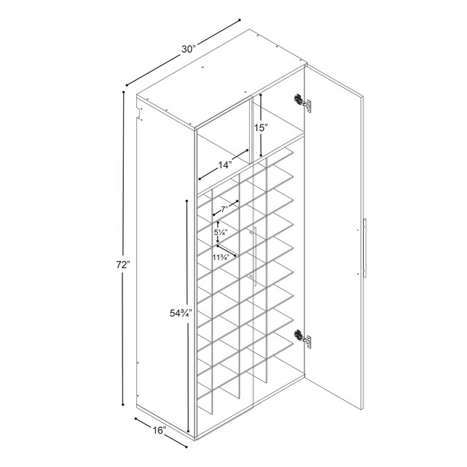 • Assembled dimensions: 30 in W x 72 in H x 16 in D (18 cubic feet)