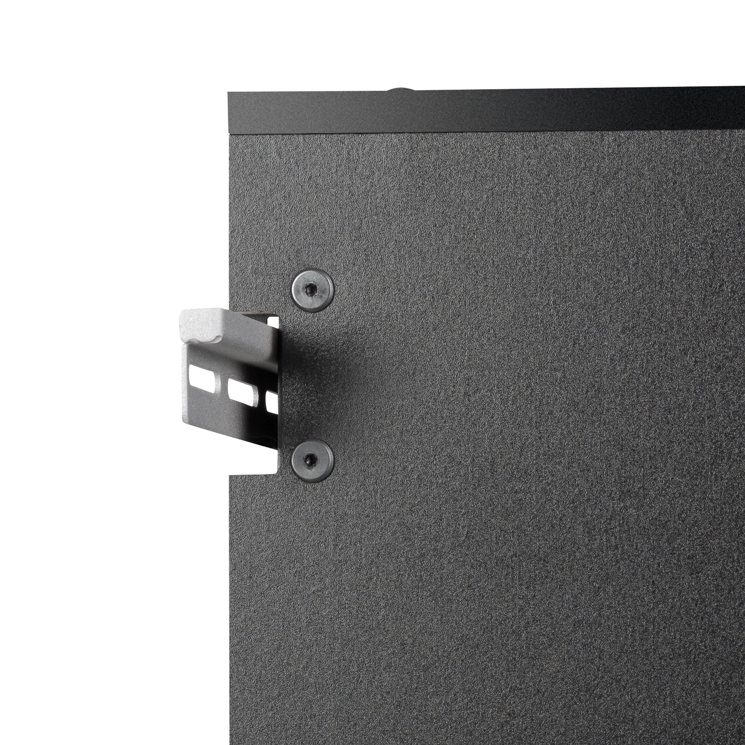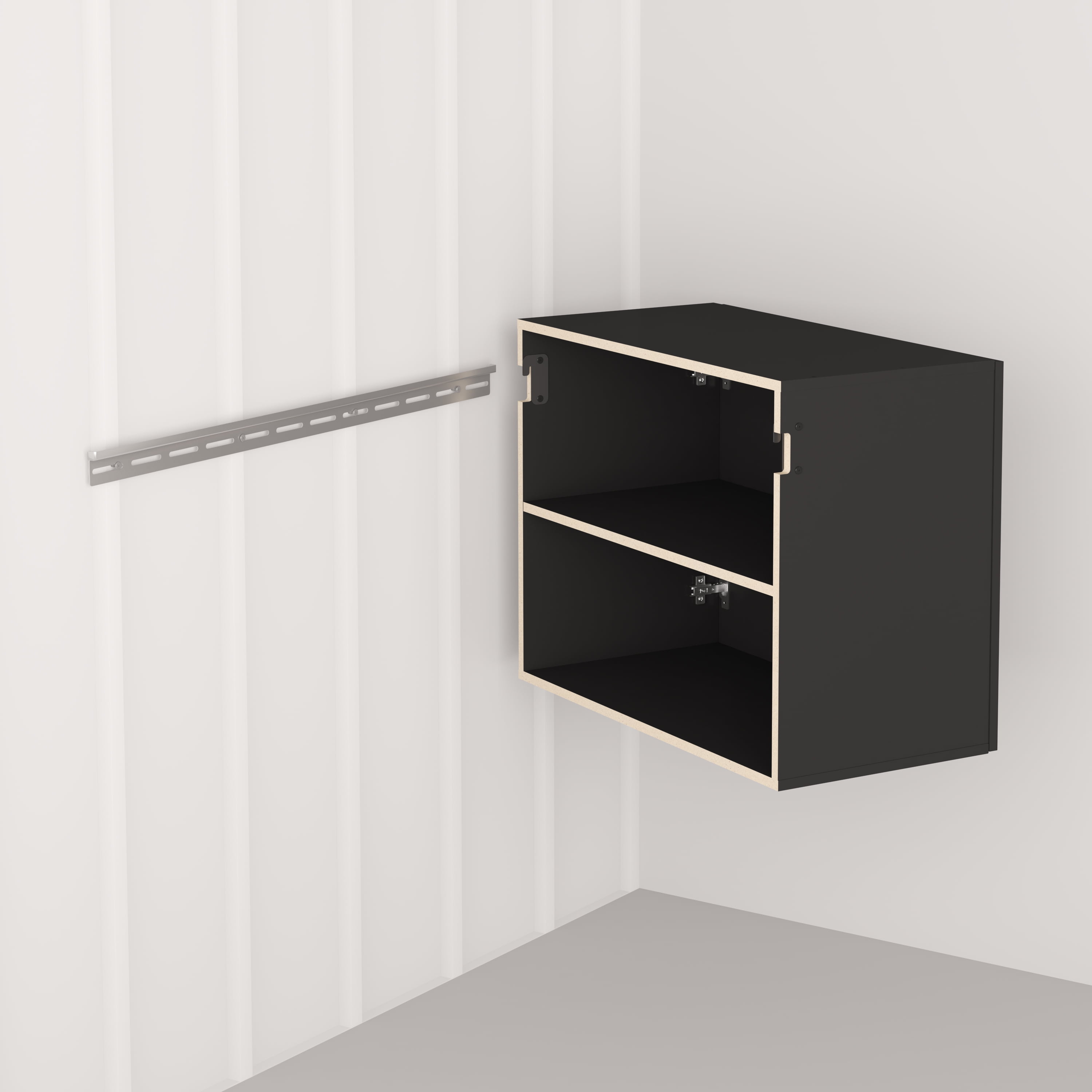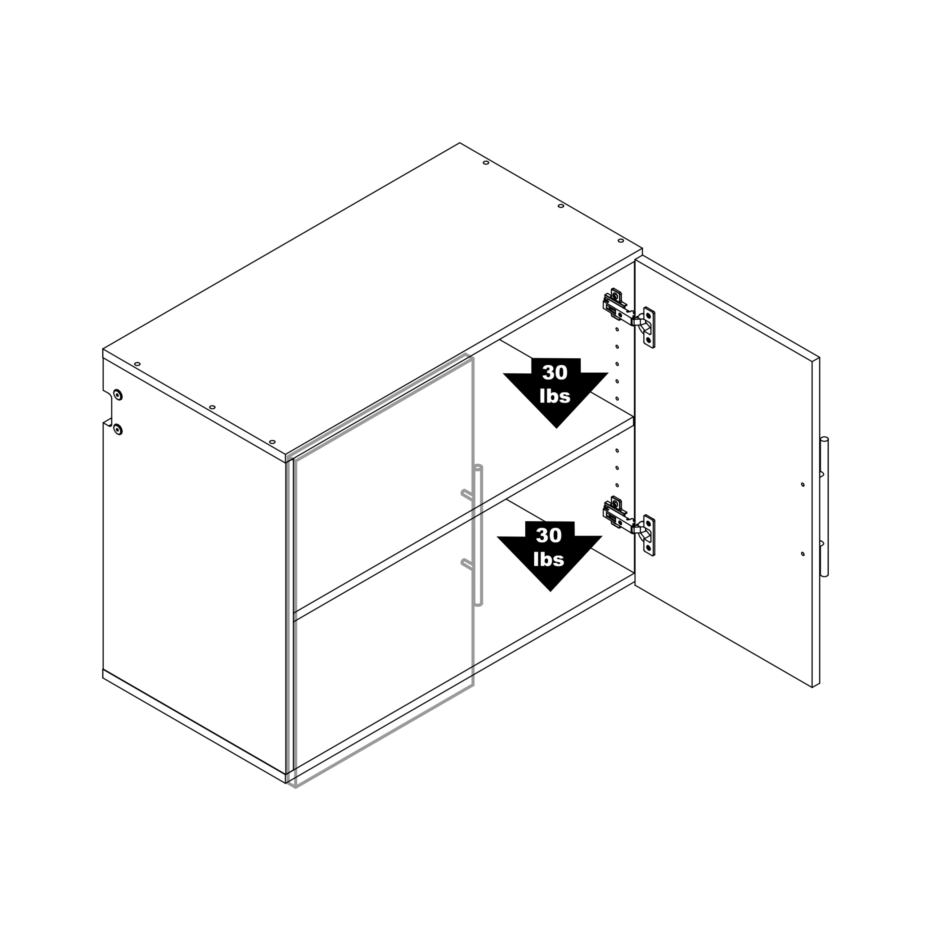 The HangUps 30″ Upper Cabinet offers versatility for your ever changing storage needs in the garage, laundry room, office or workshop. The Upper Cabinet mounts securely to the wall with a heavy duty metal rail and hook system. The wall mounted feature ensures easy cleaning beneath the cabinets and protects your stored items from water and dirt. The HangUps Collection is constructed using laminated composite wood and features metal handles and adjustable hinges. This product ships ready-to-assemble and includes all hanging rails and fastening bolts. Add other cabinets from our HangUps Collection to create a storage system to convert any cluttered room into an organized space. Features: Assembled Dimensions: 30 in. W x 24 in. H x 16 in. D (6 cubic feet) Total Product Weight: 54 lbs Total weight capacity 60lbs (30lbs per shelf) Black laminate finish Satin nickel finished handles 1 adjustable shelf (.75″ thick) 6-way adjustable hinges for fine door adjustment Ships Ready to Assemble and includes an instruction booklet for easy assembly Tools Required for Installation: drill, stud finder, level and tape measure 5-year manufacturer’s limited warranty on parts Meets all safety standards Specifications: Product Dimensions: 24″ H x 30″ W x 16″ D Product Weight: 45.8 lbs Product Dimensions: (Internal) 22.75″ H x 28.5″ W x 15.25″ D Weight Capacity: 60 lbs Shelf Weight Capacity: 30 lbs