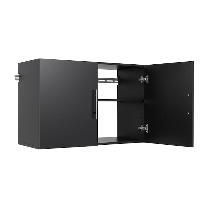 Introducing the versatile HangUps Upper Storage Cabinet, a spacious wall mounted storage solution for your home. In a sleek, black color contrasted by satin nickel-finished metal pull handles, this unit unites style with functionality. Measuring 16″D x 36″W x 24″H, it is a versatile choice for wall cabinets for storage with doors and can transform various spaces, from your bathroom to cabinet storage in your kitchen or laundry room. Manufactured in North America from durable, non-toxic, CARB-2 compliant laminated composite woods, this unit promises lasting durability and is eco-friendly too. Its two sleek doors open to reveal 2 adjustable shelves, divided by a central separator, catering to your unique storage needs. Perfect as a salon cabinet and storage, laundry room cabinets wall mounted, a functional part in your gabinetes para cocina, or as a bathroom cabinet over the toilet, its adaptability is truly impressive. Prepac’s HangUps Upper Storage Cabinet is also ideal as an above toilet cabinet in your small bathroom, or it can serve as an essential element of garage storage. As one of your potential pantry cabinets or an overhead kitchen cabinet, its wall-mounted design can effectively utilize vertical space, leaving your floor clutter-free. Assembly is made easy with the included detailed instructional booklet. The secure wall mounting metal rail and hook system is included to ensure that your belongings are stored safely overhead. It can be a helpful above the toilet storage cabinet for bathroom essentials or perfect as a wall cabinet for laundry room organization, adding order to any room. Whatever your storage needs, this wall storage cabinet with shelves with doors makes it simple to organize and declutter your home. Pair it with other Prepac HangUps cabinets to create a complete storage system that works for you. Explore how the HangUps Upper Storage Cabinet could revolutionize your home organization today.