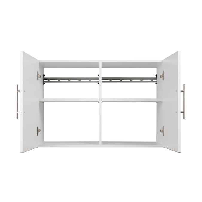 “Introducing the versatile HangUps Upper Storage Cabinet, a spacious wall mounted storage solution for your home. In a sleek, white color contrasted by satin nickel-finished metal pull handles, this unit unites style with functionality. Measuring 16″”D x 36″”W x 24″”H, it is a versatile choice for wall cabinets for storage with doors and can transform various spaces, from your bathroom to cabinet storage in your kitchen or laundry room. Manufactured in North America from durable, non-toxic, CARB-2 compliant laminated composite woods, this unit promises lasting durability and is eco-friendly too. Its two sleek doors open to reveal 2 adjustable shelves, divided by a central separator, catering to your unique storage needs. Perfect as a salon cabinet and storage, laundry room cabinets wall mounted, a functional part in your gabinetes para cocina, or as a bathroom cabinet over the toilet, its adaptability is truly impressive. Prepac’s HangUps Upper Storage Cabinet is also ideal as an above toilet cabinet in your small bathroom, or it can serve as an essential element of garage storage. As one of your potential pantry cabinets or an overhead kitchen cabinet, its wall-mounted design can effectively utilize vertical space, leaving your floor clutter-free. Assembly is made easy with the included detailed instructional booklet. The secure wall mounting metal rail and hook system is included to ensure that your belongings are stored safely overhead. It can be a helpful above the toilet storage cabinet for bathroom essentials or perfect as a wall cabinet for laundry room organization, adding order to any room. Whatever your storage needs, this wall storage cabinet with shelves with doors makes it simple to organize and declutter your home. Pair it with other Prepac HangUps cabinets to create a complete storage system that works for you. Explore how the HangUps Upper Storage Cabinet could revolutionize your home organization today.”