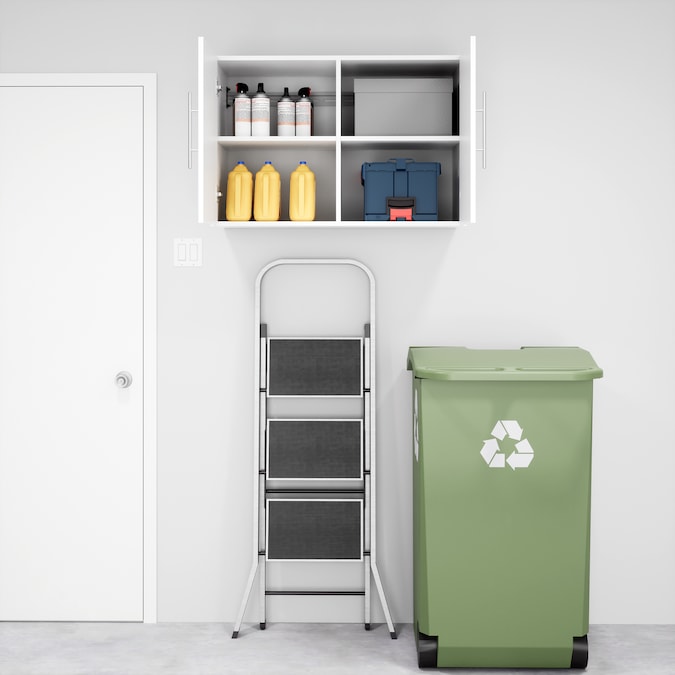 - GARAGE CABINETS WALL MOUNTED: High-Quality Materials As durable as it is versatile, this wall mount cabinet is made from non-toxic, CARB-2 compliant laminated composite woods; Ideal for all your garage wall cabinets and storage cabinet needs, both in the garage and throughout the home