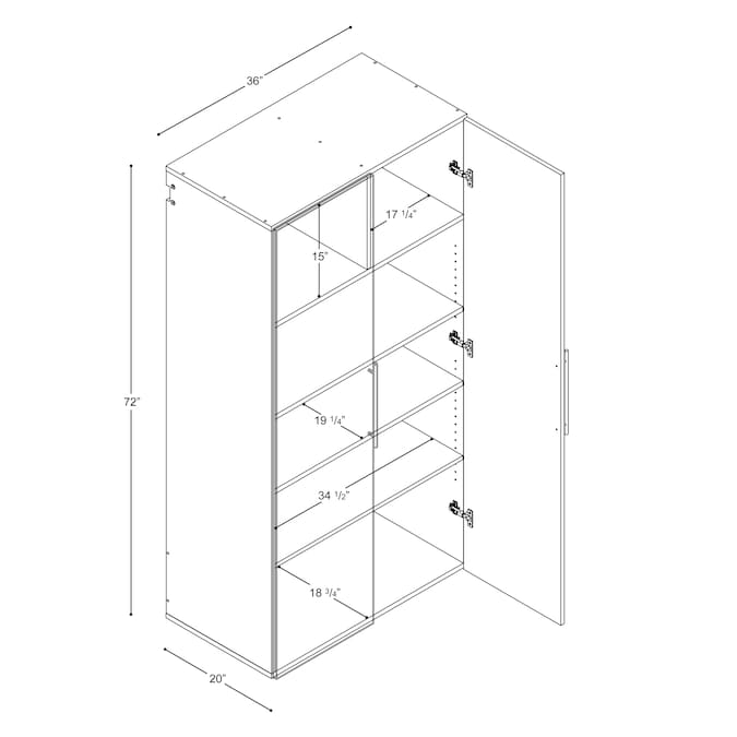 - 3 Adjustable shelves and 1 fixed shelf with middle divider (shelves are 0.75 in thick)