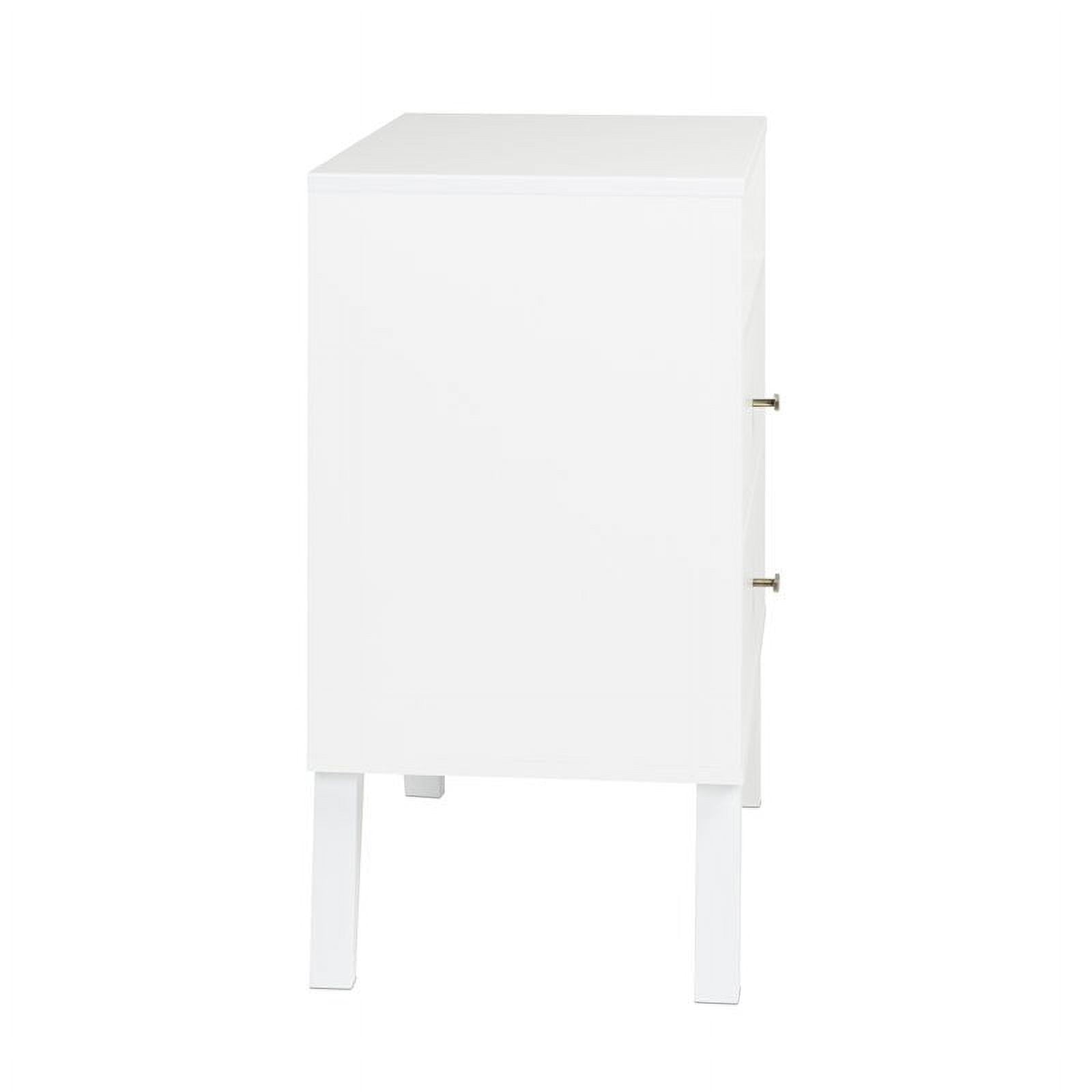 Finished in White laminate Tapered solid wood legs Brushed brass finished knobs Drawers run smoothly on metal glides with built-in safety stops Assembled dimensions: 22.5″W x 29.5″H x 16″D Dimensions of open shelf: 21.25″w x 5.25″h x 15.75″d Internal Drawer Dimensions: 19.5″w x 12.75″ x 5″h Constructed from non-toxic, CARB2 compliant, laminated composite woods Ships Ready to Assemble, includes an instruction booklet for easy assembly Manufactured in Canada and meets all North American safety standards 5-year manufacturer’s limited parts warranty Weight Capacity: Per Drawer: 8 lbs / On Top: 25 lbs