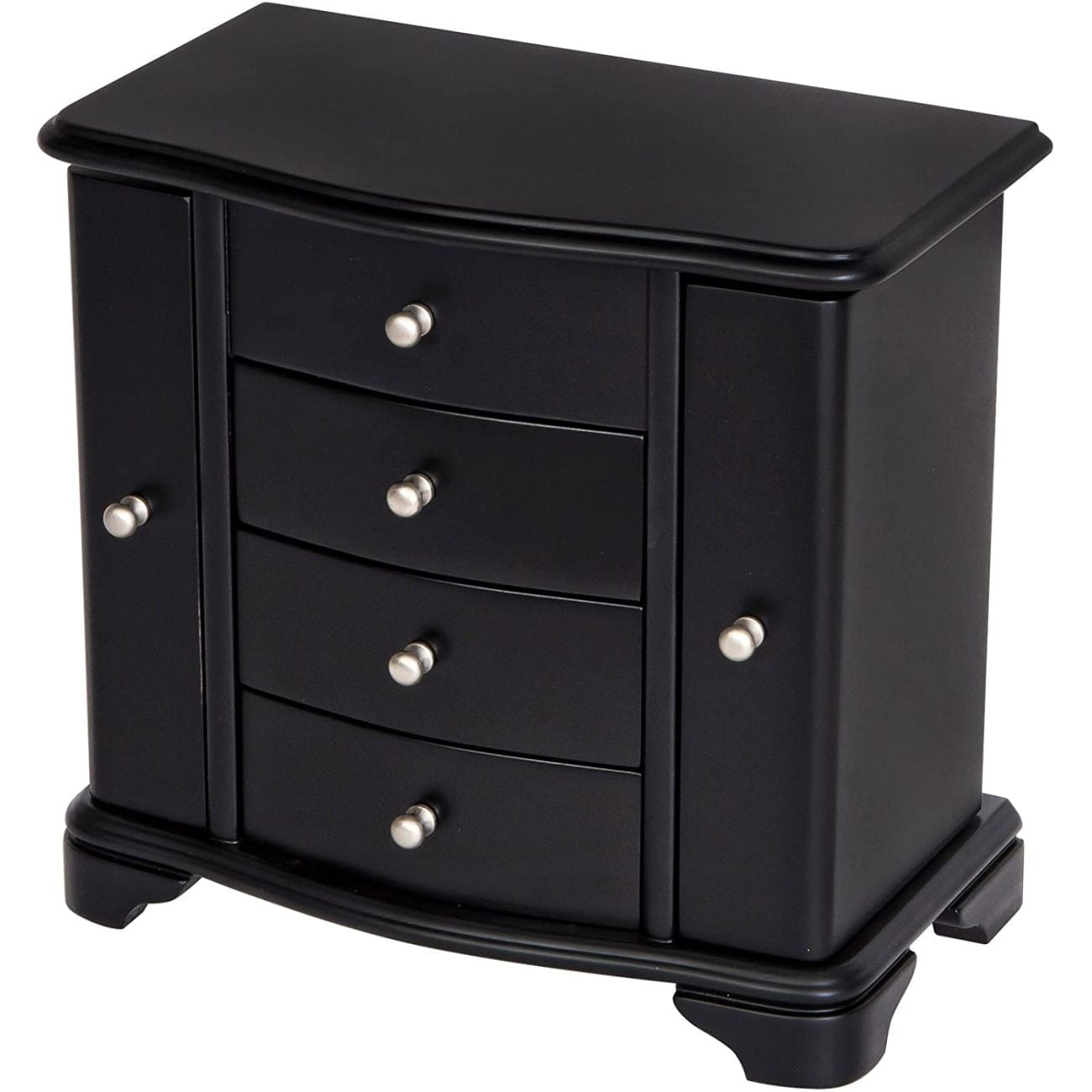 Available in Black, Cherry, Drifted Gray, and White finishes Tapered 8 in high solid wood legs Brushed brass finished knobs Drawers run smoothly on metal glides with built-in safety stops Assembled dimensions: 26.5 in. W x 41 in. H x 18.25 in. D Constructed from non-toxic, CARB-2 compliant, laminated composite woods Internal Drawer Dimensions: 23.25 in. W x 12.75 in. x 5 in. H Ships Ready to Assemble, includes an instruction booklet for easy assembly Meets all safety standards Weight Capacity: Per Drawer: 12 lbs; On top: 35 lbs