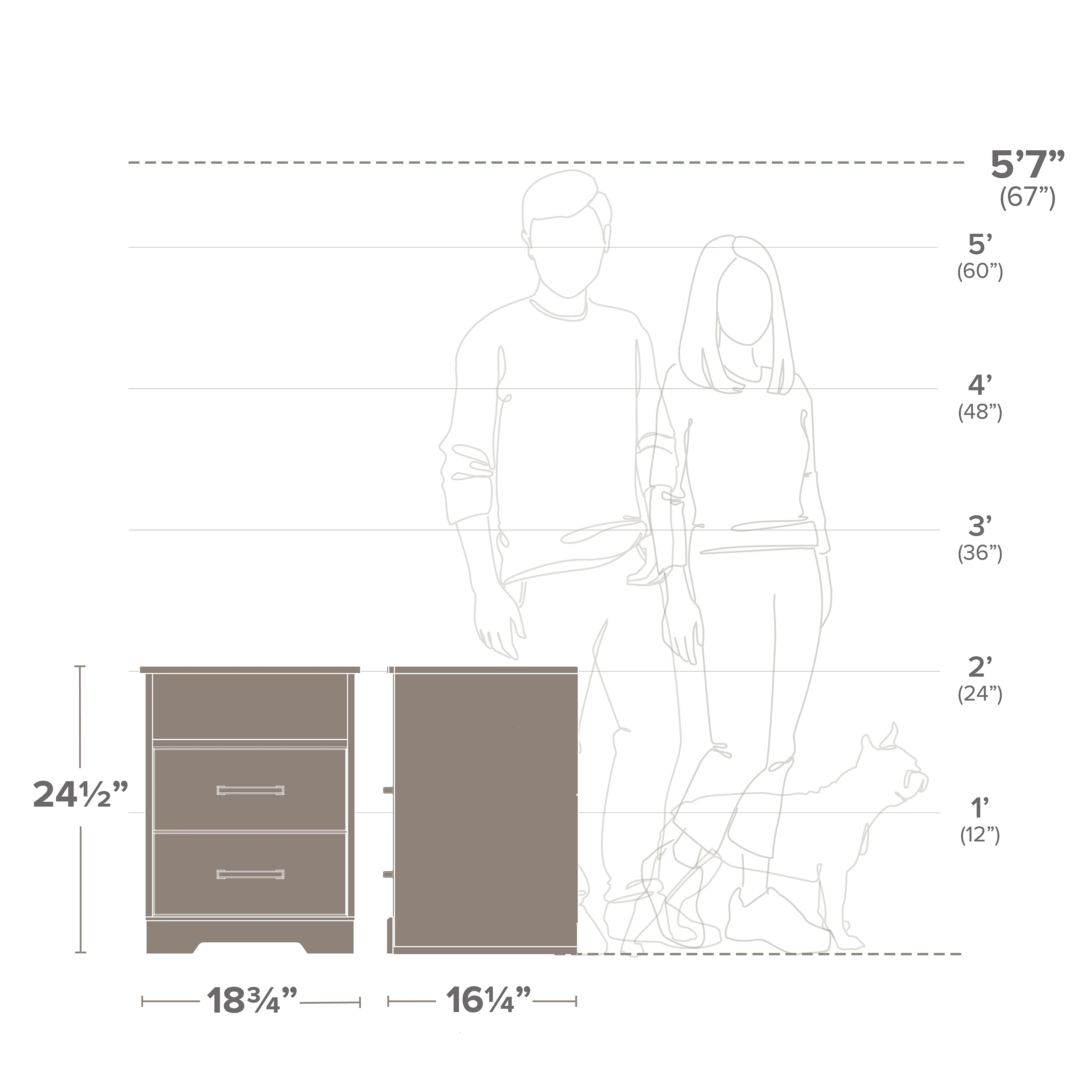 - ASSEMBLED DIMENSIONS & WEIGHT- Nightstand 16.25″”D x 18.75″”W x 24.5″”H, Total weight- 35.5 lbs., All pieces arrive ready to assemble in 1 Box