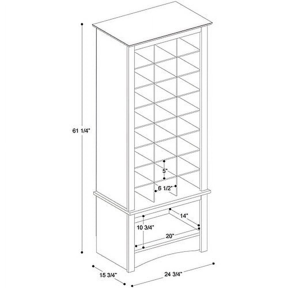 Don’t hide your favorite shoes at the back of the closet! Our stylish tall shoe storage cabinet is a perfect fit for any foyer, mudroom, entryway or bedroom. Get your shoes up off the floor and neatly organized with the functionality of custom built-in shelving at an affordable price. This cabinet has 24 spacious cubbies that can fit men’s size 13 shoes and a large bottom compartment for boots, bags or even a basket to hold accessories such as scarves or gloves. Built with durable laminated composite woods and finished in “hide-the-scuffs” Black or Espresso. Features: Keeps shoes accessible and at eye level Internal dimensions: 6.5″W x 5″H x 14″D (each cubbie) 24 spacious cubbies that fit men’s size 13 shoes plus a large bottom compartment 5-year manufacturer’s limited warranty on parts Finished in durable deep “hide-the-scuffs” black laminate Constructed from CARB-compliant, laminated composite woods with a sturdy MDF backer Ships ready to assemble and includes an instruction booklet for easy assembly Proudly manufactured in North America Specifications: Product Dimensions: 24.75″W x 61.25″H x 15.75″D