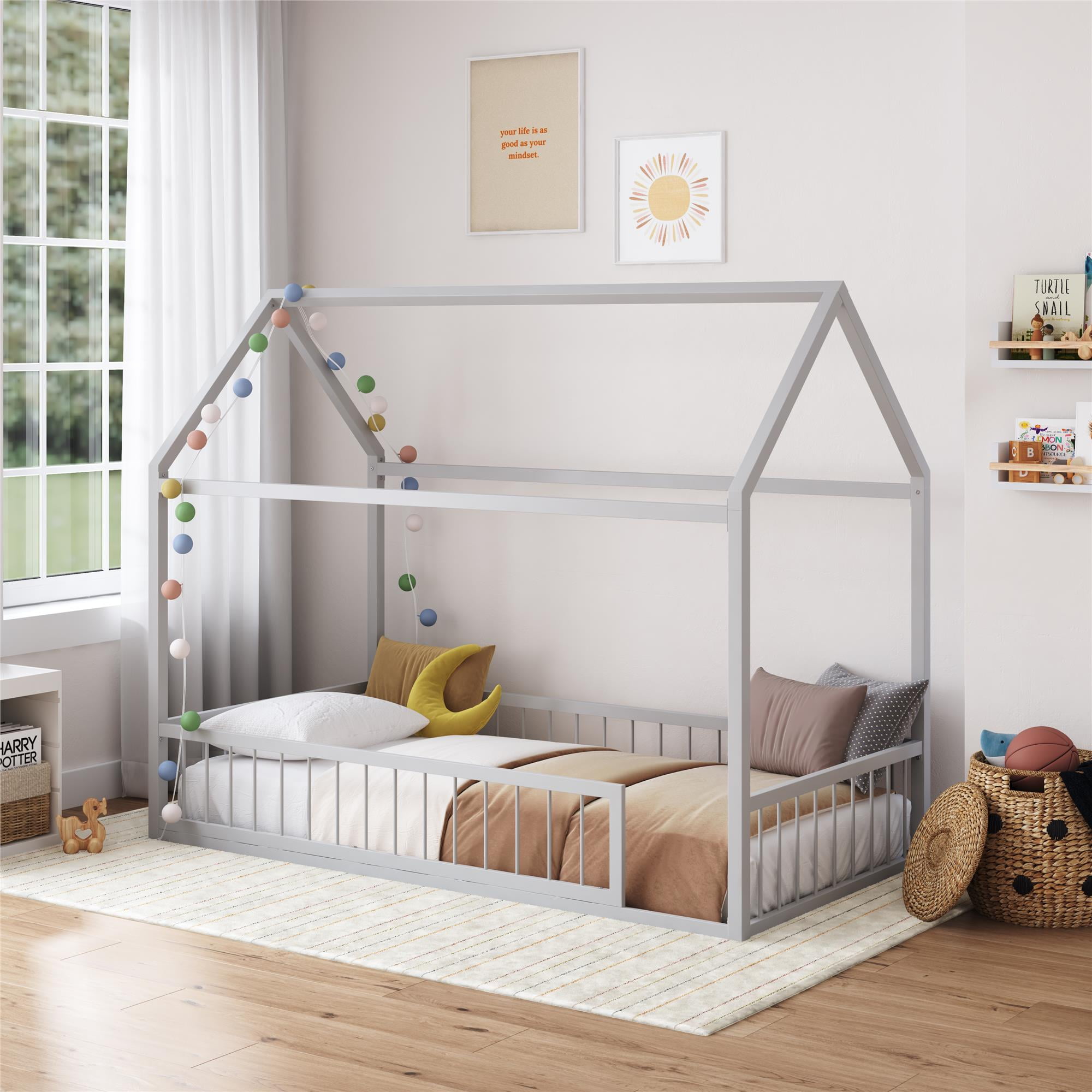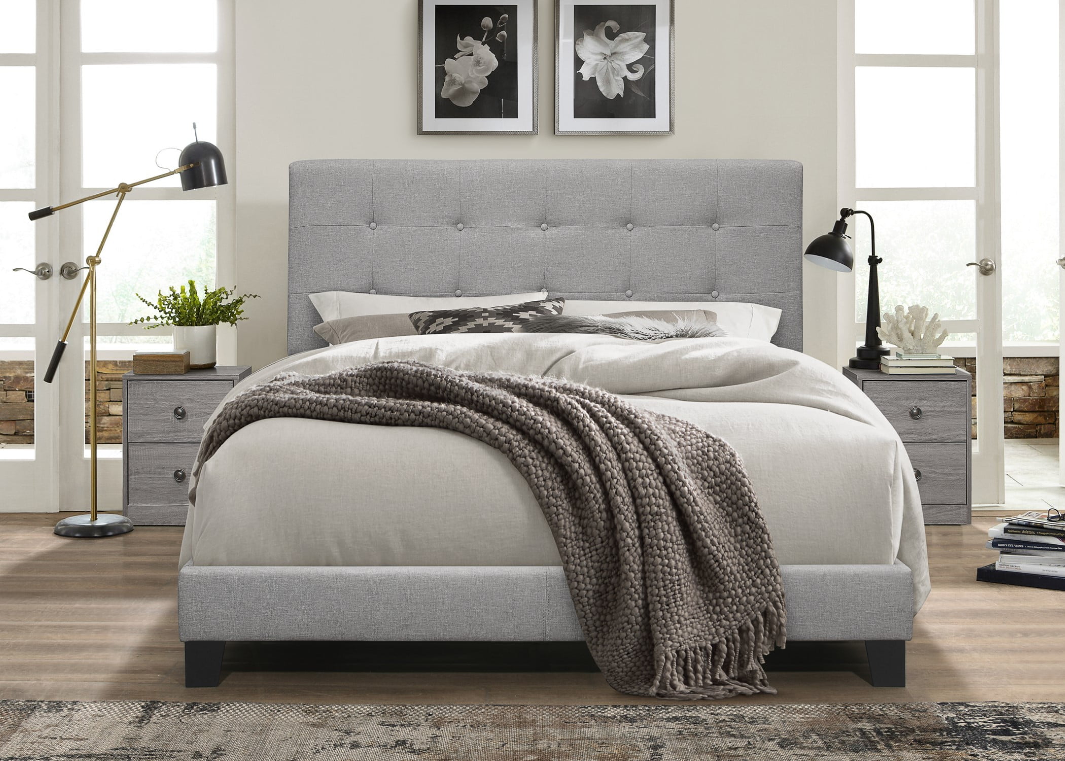 DESIGN & CONSTRUCTION: This bedside table embraces a well-crafted design with curved edges and a sturdy structure. The gray nightstand elevates your bedroom furniture set with antique bronze-finished knobs DURABILITY: Built from laminated composite woods with a firm MDF liner, this 2 drawer nightstand is a reliable piece of bedroom furniture. It’s a night stand that withstands daily use CONVENIENCE: Our gray nightstand features two drawers with smooth metal glides and built-in safety. This detailed bedroom night stand complements your bedroom setup with its useful functionality SPACIOUS: With its open shelf, this nightstand with drawers provides room for your books or alarm clock. The small night stand perfectly ties together practicality with style in small spaces FINISH & STYLE: Boasting a durable rich gray laminate, this wood nightstand with drawers adds a refined aesthetic. The night stand with drawers easily complements other units in the Fremont Bedroom Collection