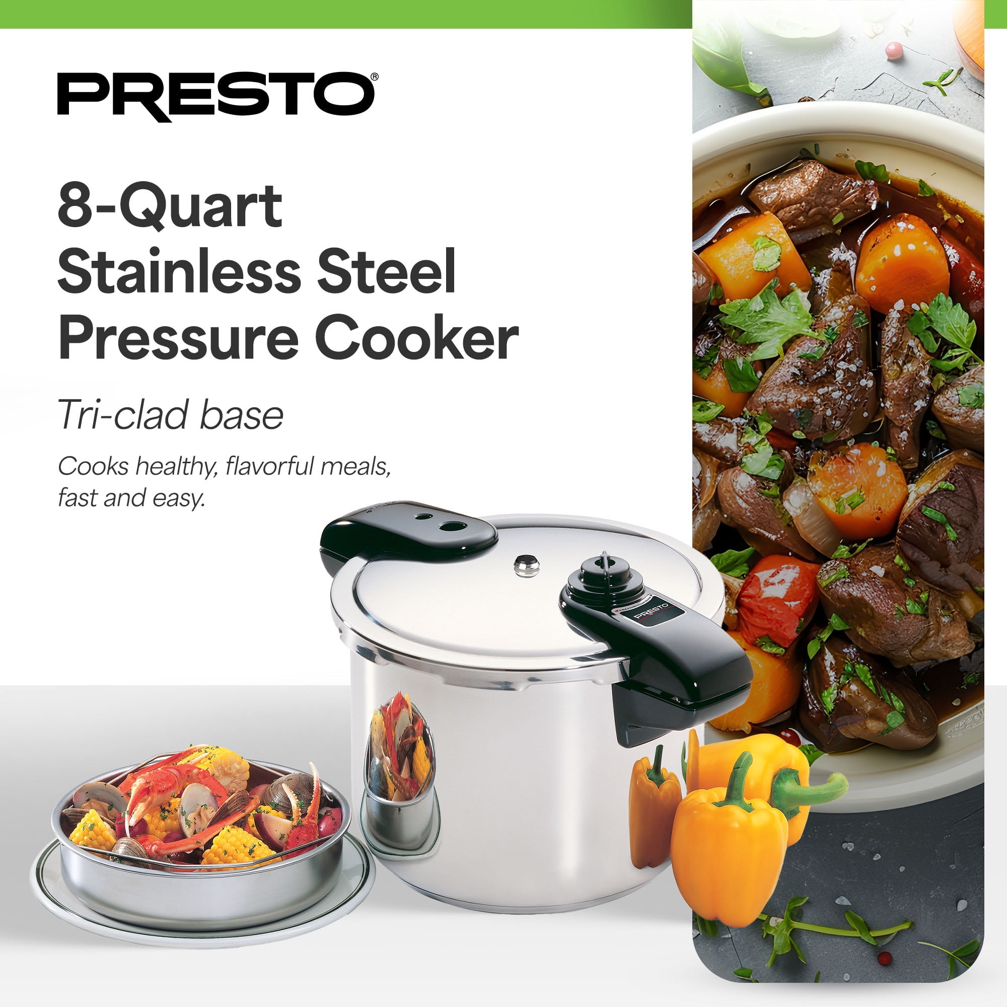 Presto 01370 8 Quart Stainless Steel Pressure Cooker, Tri Clad Base, Silver