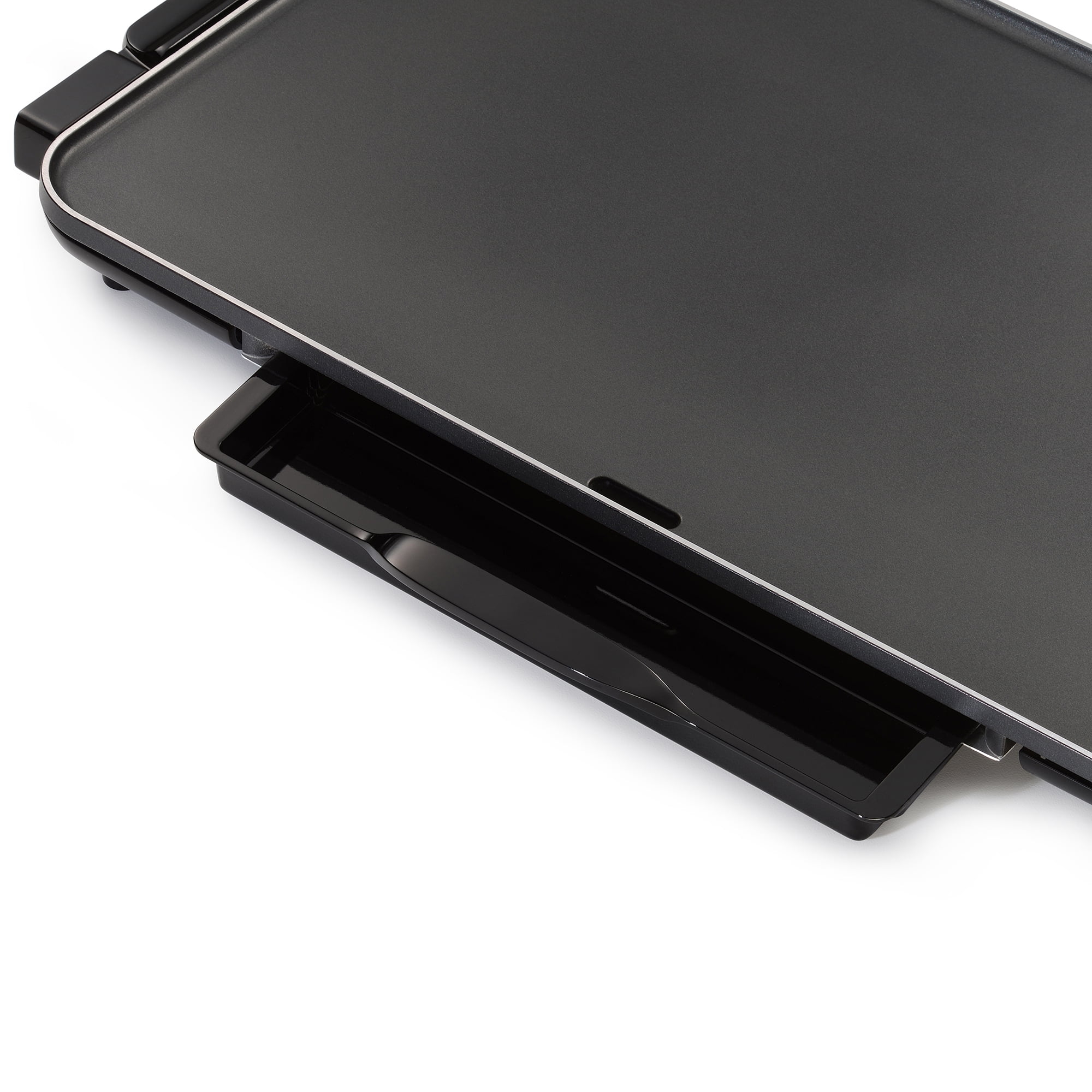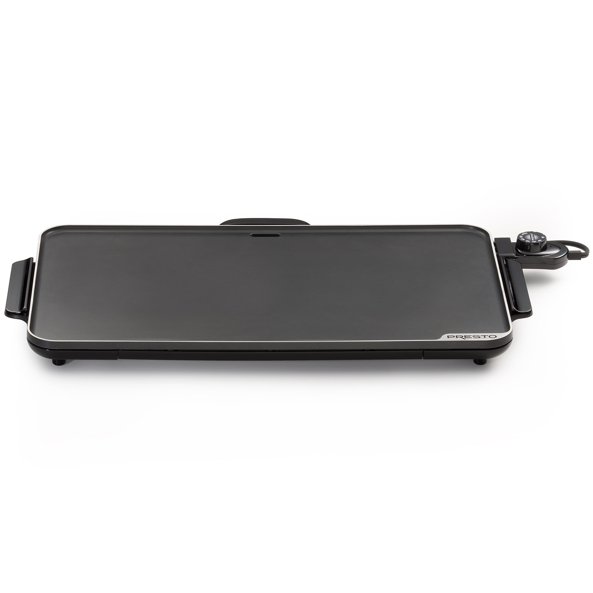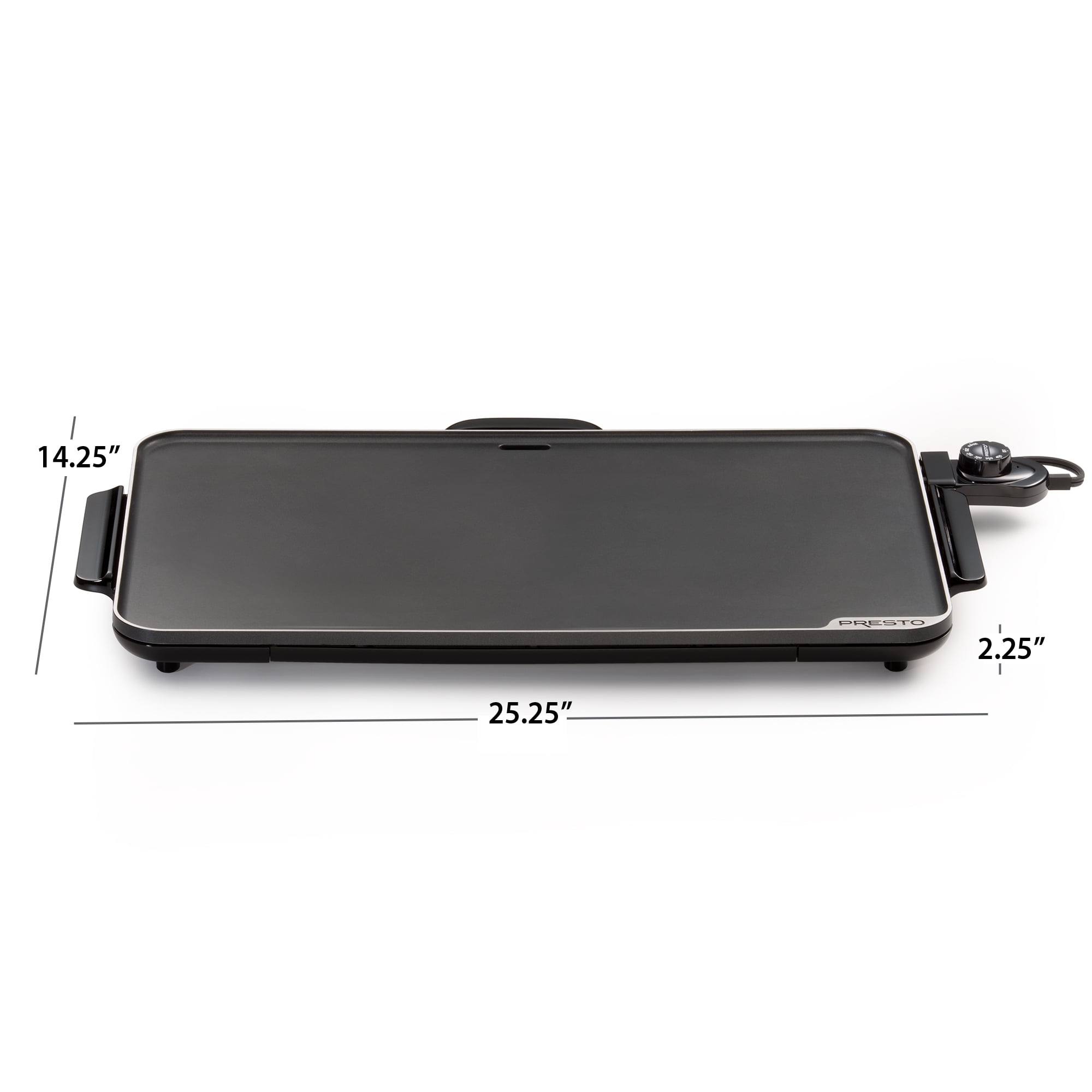 A low-profile design makes this Slimline griddle ideal for buffet-style serving as well as being convenient to store. The extra-large 13- x 22-inch cooking surface is great for breakfast, lunch, dinner, and entertaining Nonstick cooking surface provides stick-free cooking and easy cleaning Control Master® heat control automatically maintains the desired cooking temperature Heavy cast aluminum griddle is virtually warp-proof, and the slide-out drip tray removes for easy cleaning Griddle is fully immersible with the heat control removed Presto 22″ Electric Slimline Griddle condition – New