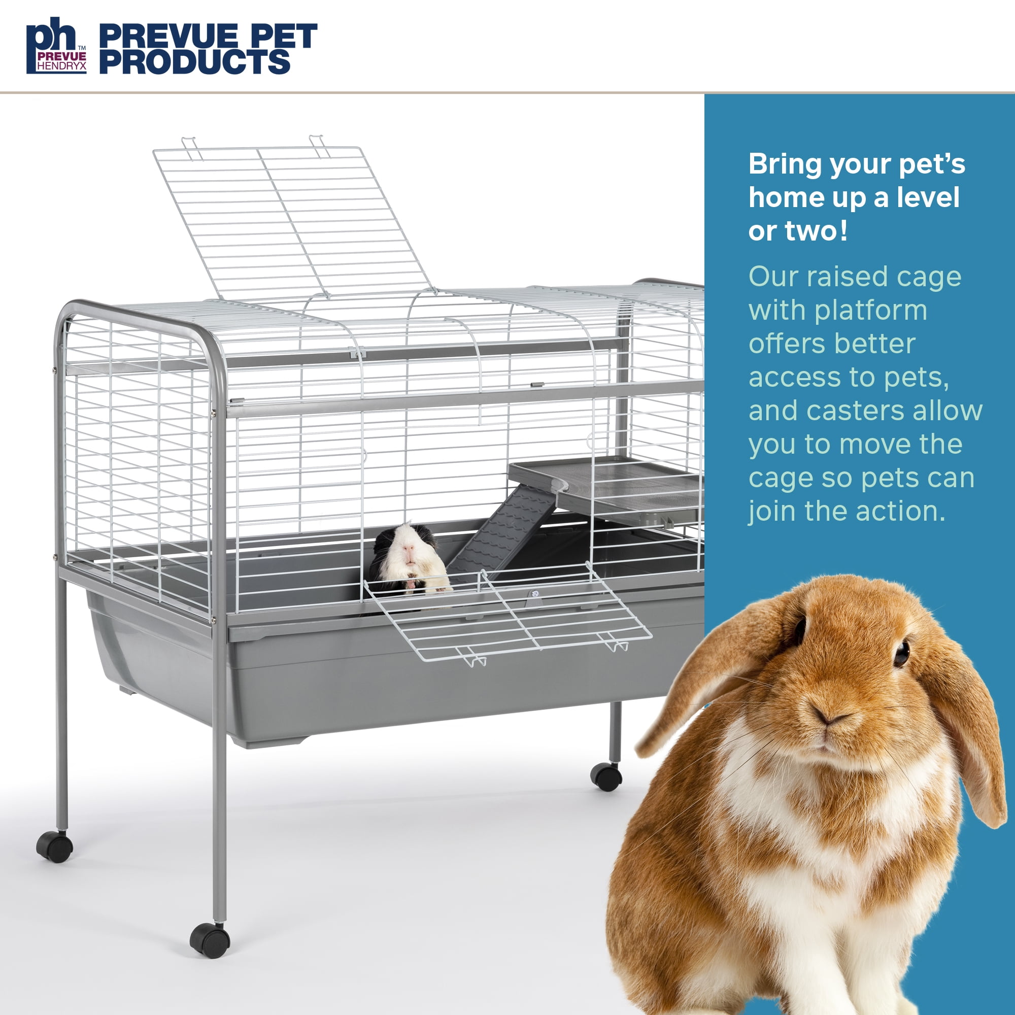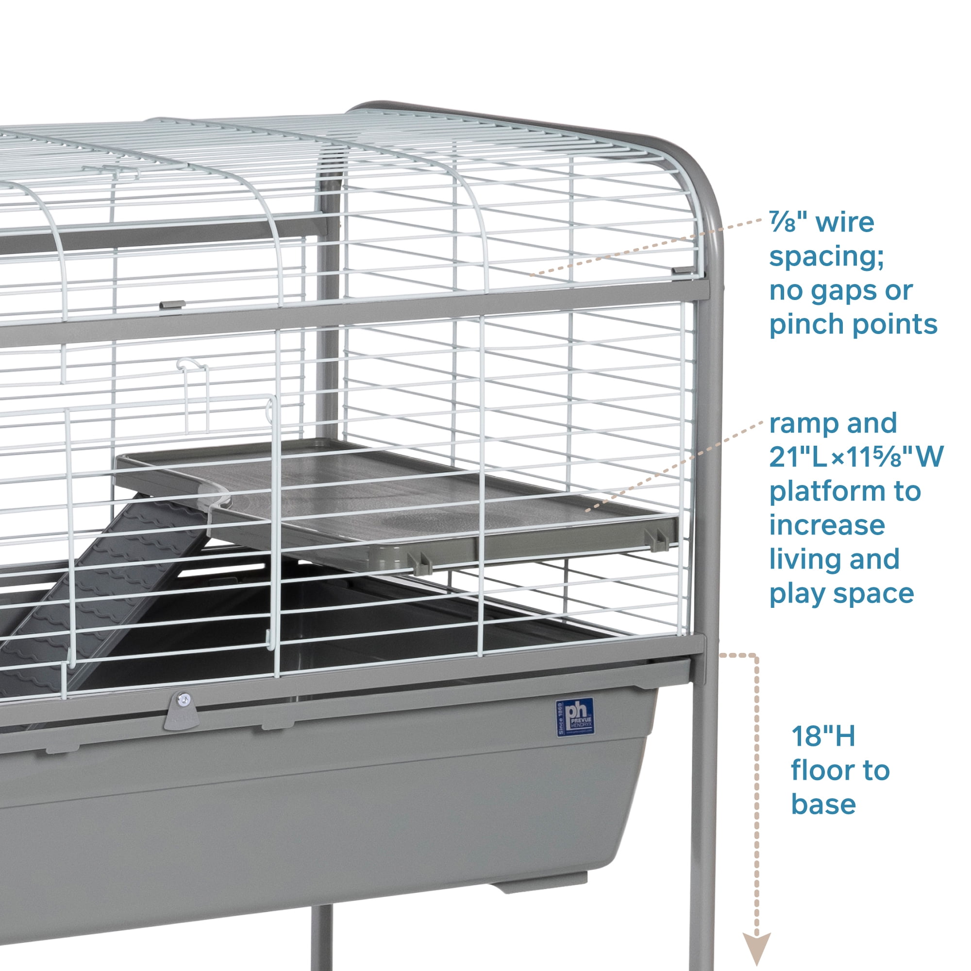 Take your pet’s living quarters to new heights with our Jumbo Small Animal Home! Attractive rounded-tube frame legs raise the cage off the ground and up where the action is. The elevated cage is also great for an easier access to pets. Features include: Rolling casters for cage mobility; Full-opening rooftop for access to the entire cage interior; Removable rounded-corner base for easy removal and regular cleaning; Ramp & platform for additional cage space and a higher view for pets to survey their surroundings. This is an ideal cage for guinea pigs or small rabbits, and for homes with small children and other pets.