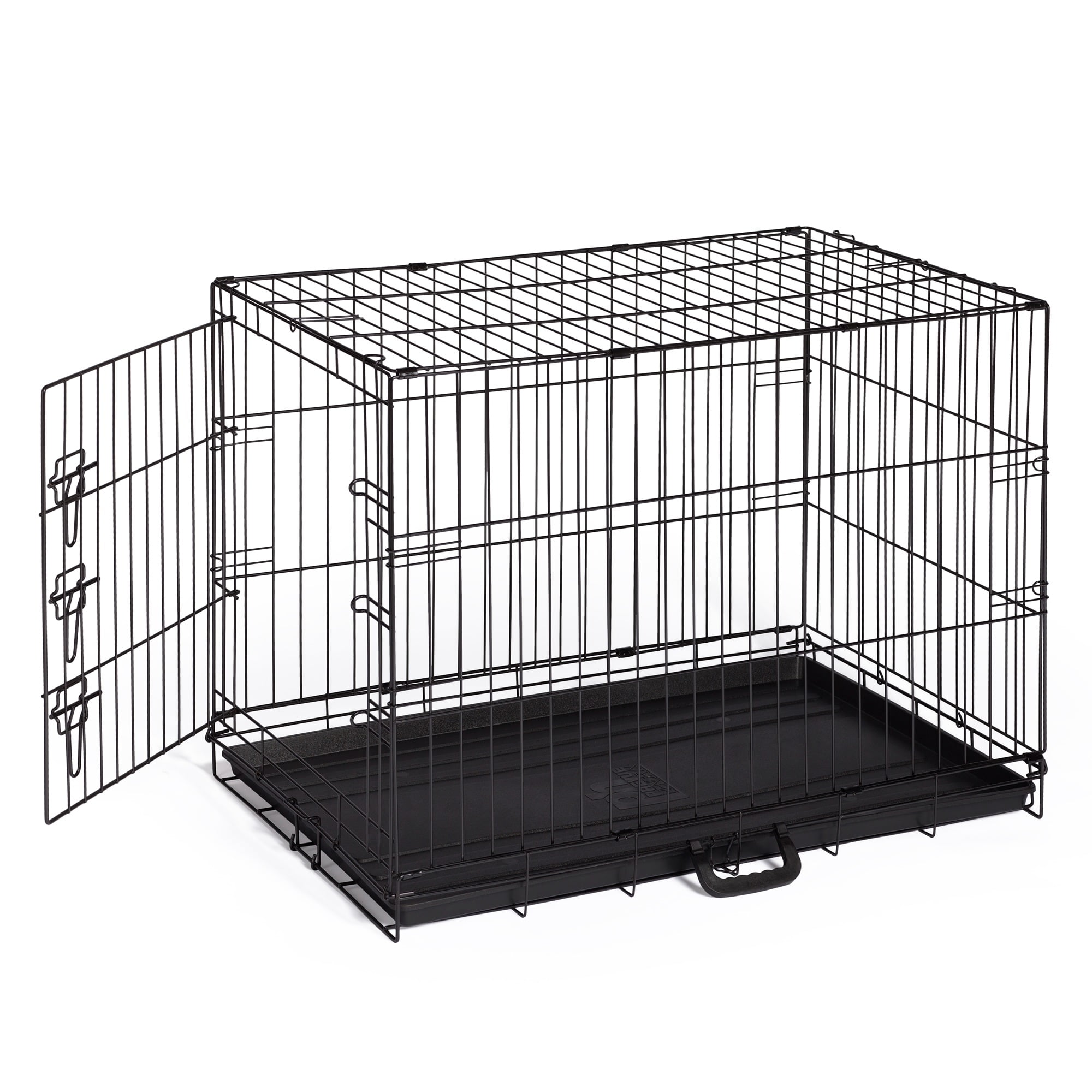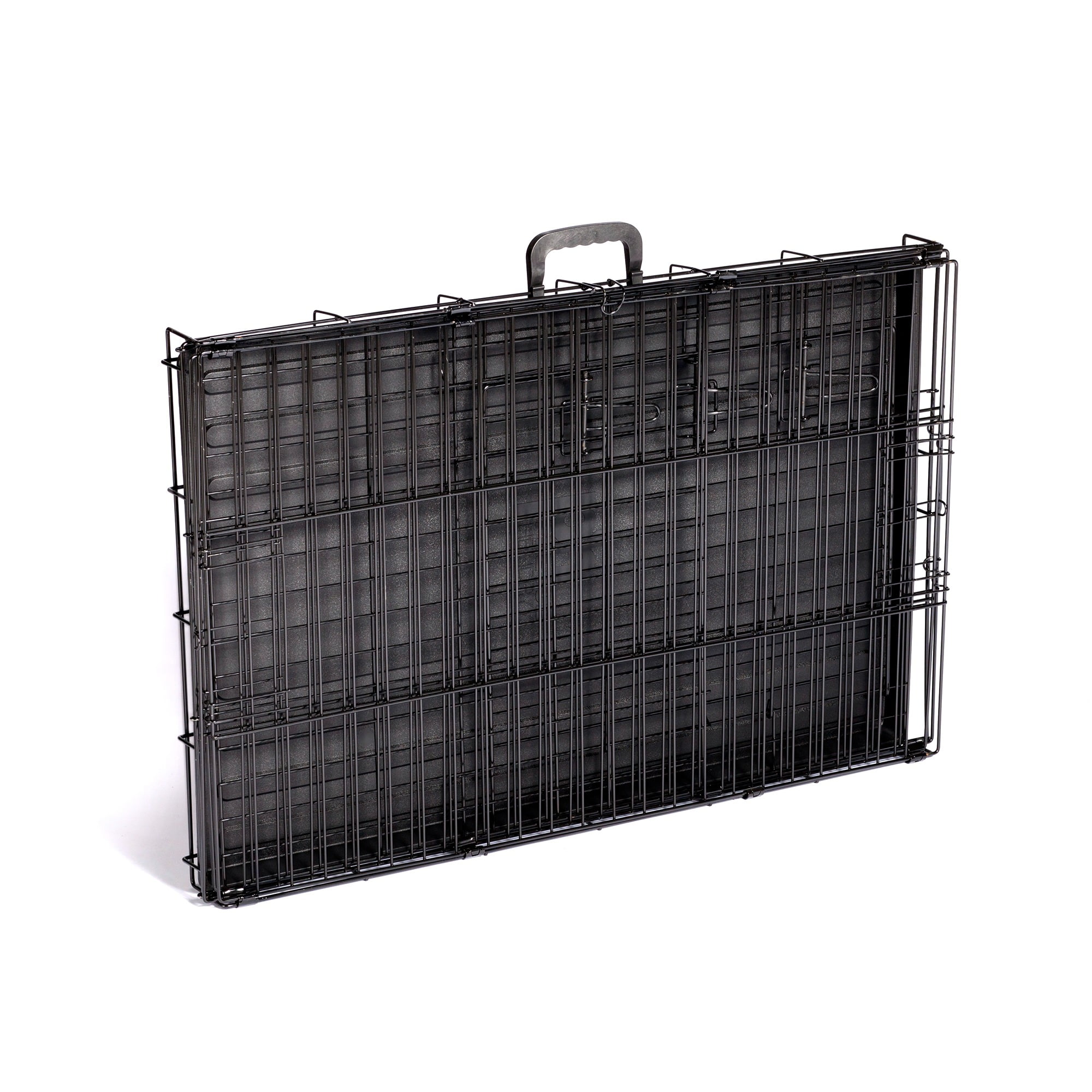 Constructed from heavy-duty 5 7 & 9 gauge mesh for security and stability Large front door features a heavier framework plus 3 security locks Crate measures 36″ Long 23″ Wide and 27″ High while open and folds flat to 36 1/2″ Long 23 1/4″ Wide and 4″ High Our Large Dog Crate is ideal for pets up to 60 lbs. and 25? in height such as Bulldogs Basset Hounds Springer Spaniels and Weimaraners Product Height:26.00 Product Depth:23.00 Product Length:36.50 Easy to assemble – no tools required Unobstructed views and better air ventilation than plastic kennels plus it wont leak or stain like galvanized steel Assembly Required:Yes