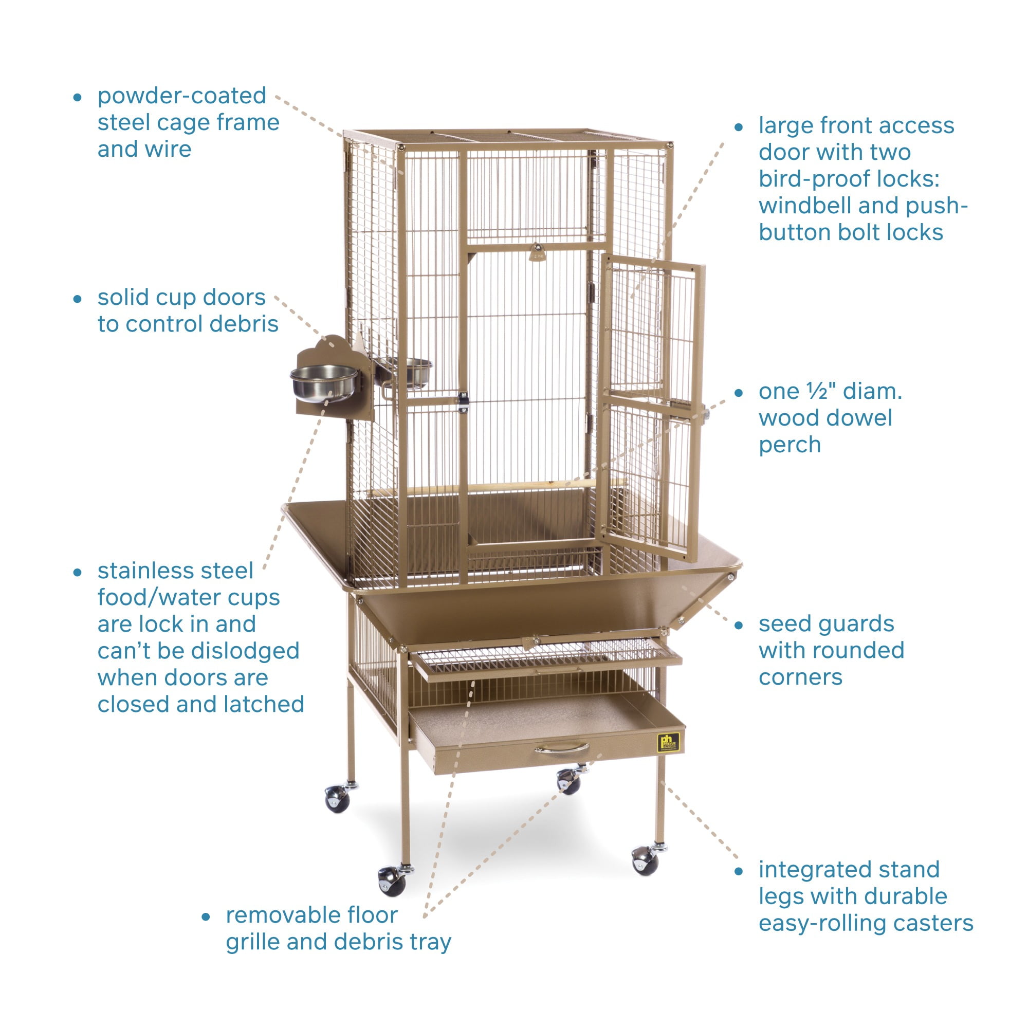 Prevue Pet Products Park Plaza Bird Cage, Coco Brown: Ideal for parakeets, canaries and other small-to-medium sized birds Wrought iron construction offers quality craftsmanship at an affordable price 2 stainless steel cups and 1 hardwood perch included Durable, non-toxic powder-coated finish Prevue Pet bird cage is 18″ long, 18″ wide and 49″ high with 0.5″ wire spacing 90-day limited warranty Model# 3351COCO