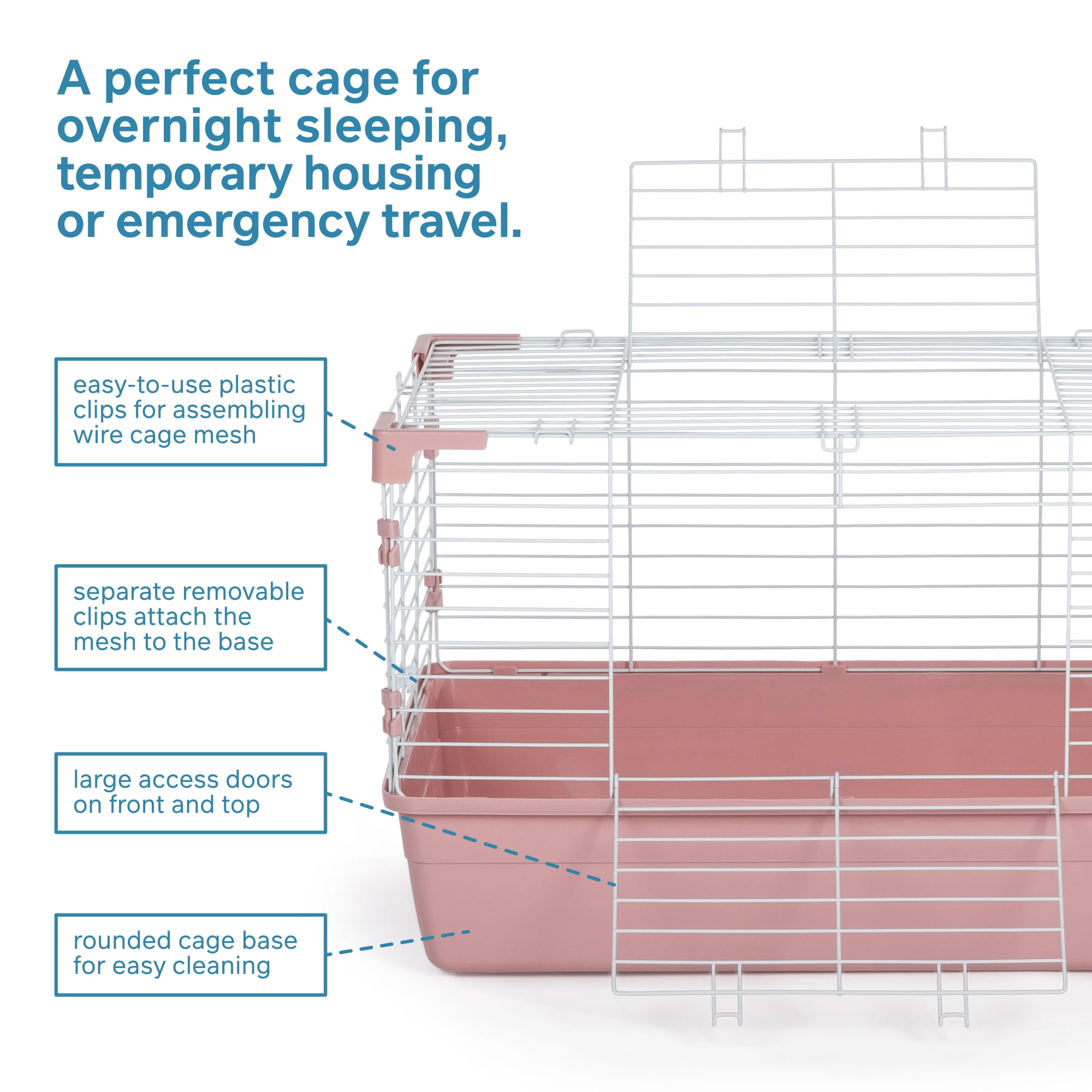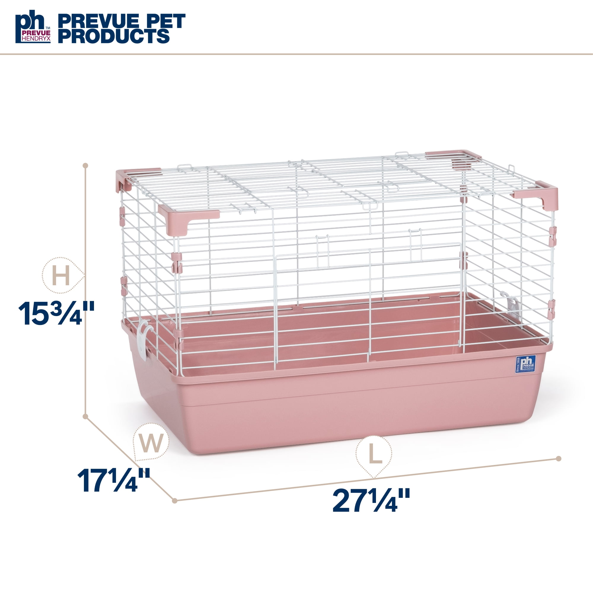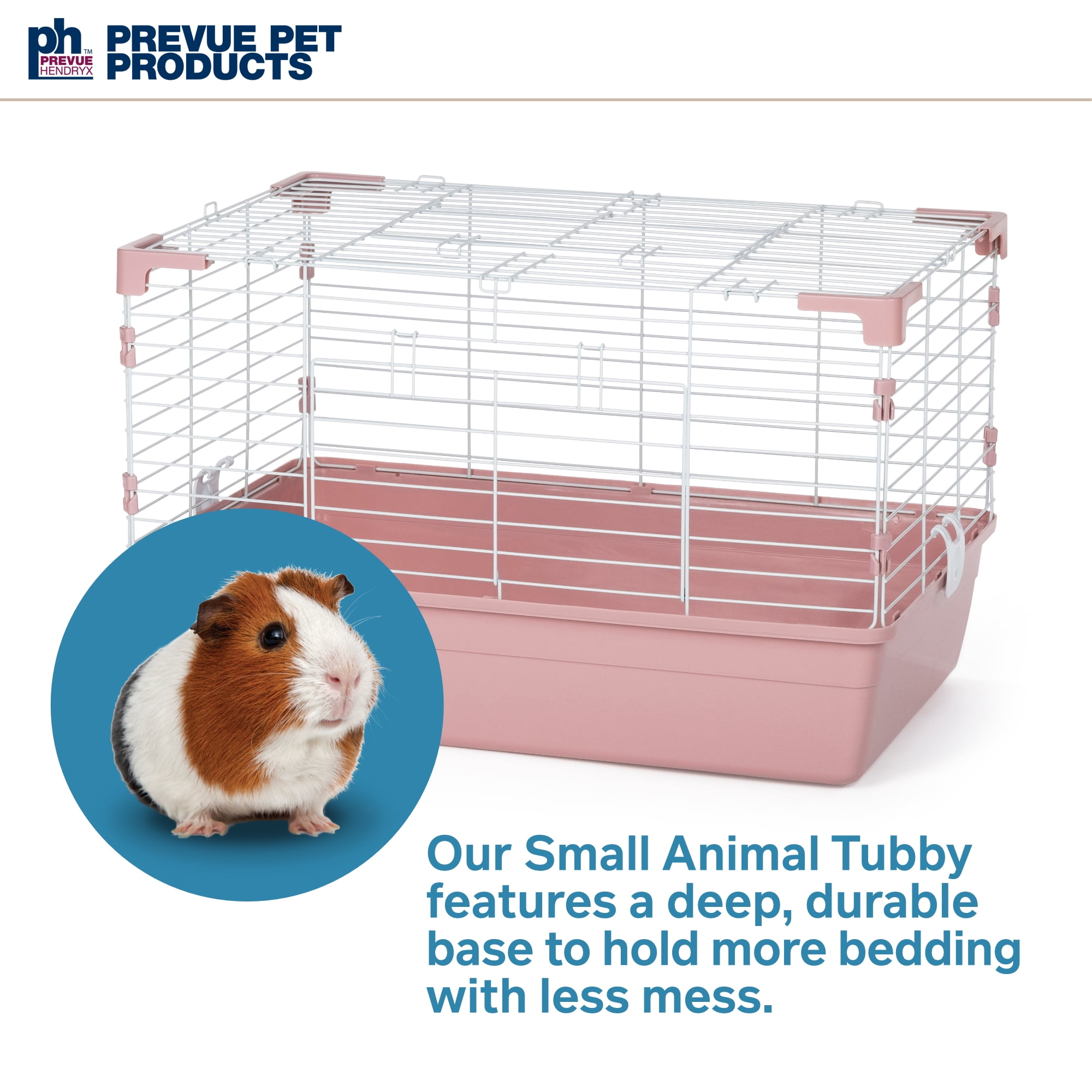 Small animal tubby in pink 6.5 deep tub to contain mess 2 large doors (top and front) for easy access to pets Powder-coated mesh 27.25″ L x 17.25″ W x 15.75″ H