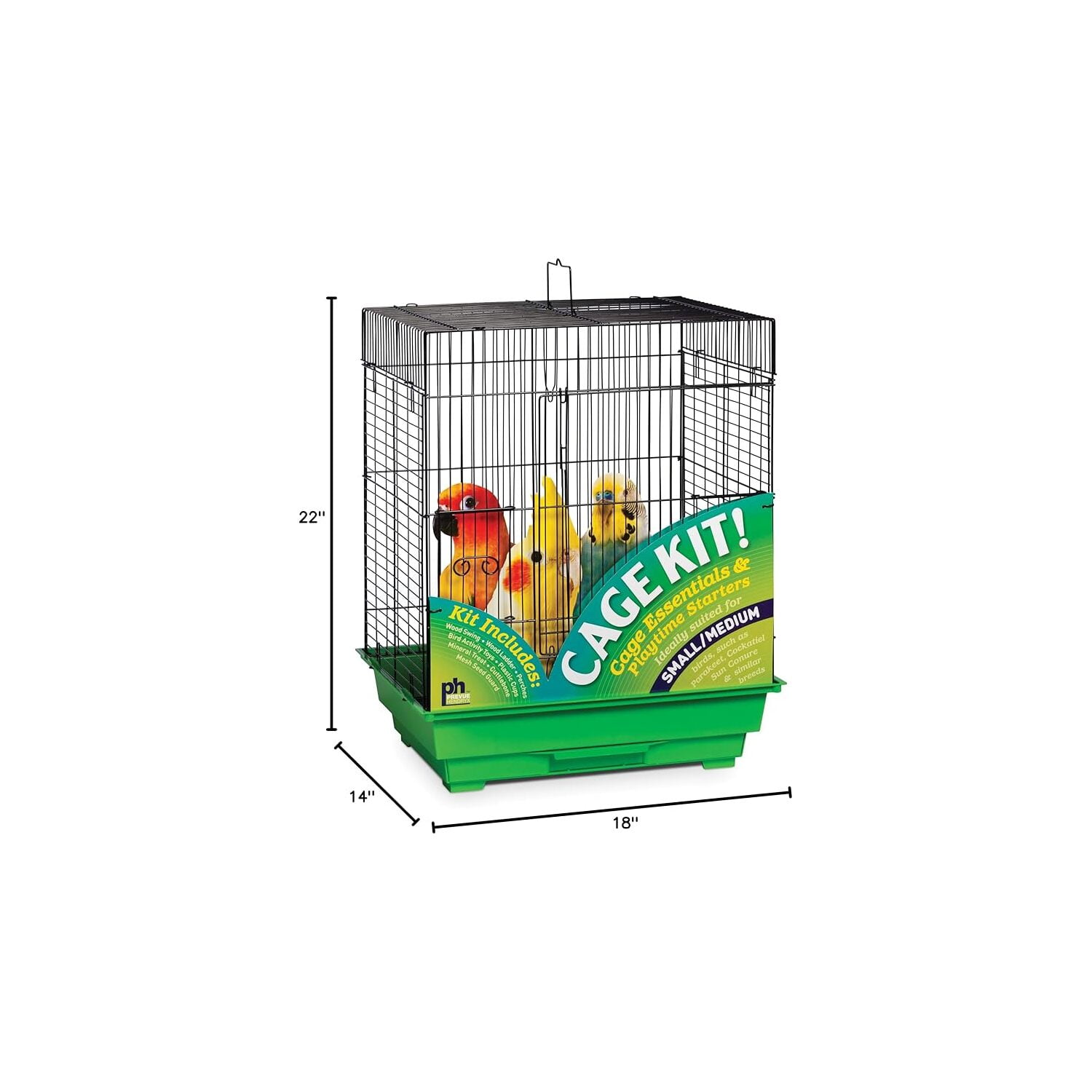 Prevue Pet Products Square Roof Green & Black Bird Cage Starter Kit 91321