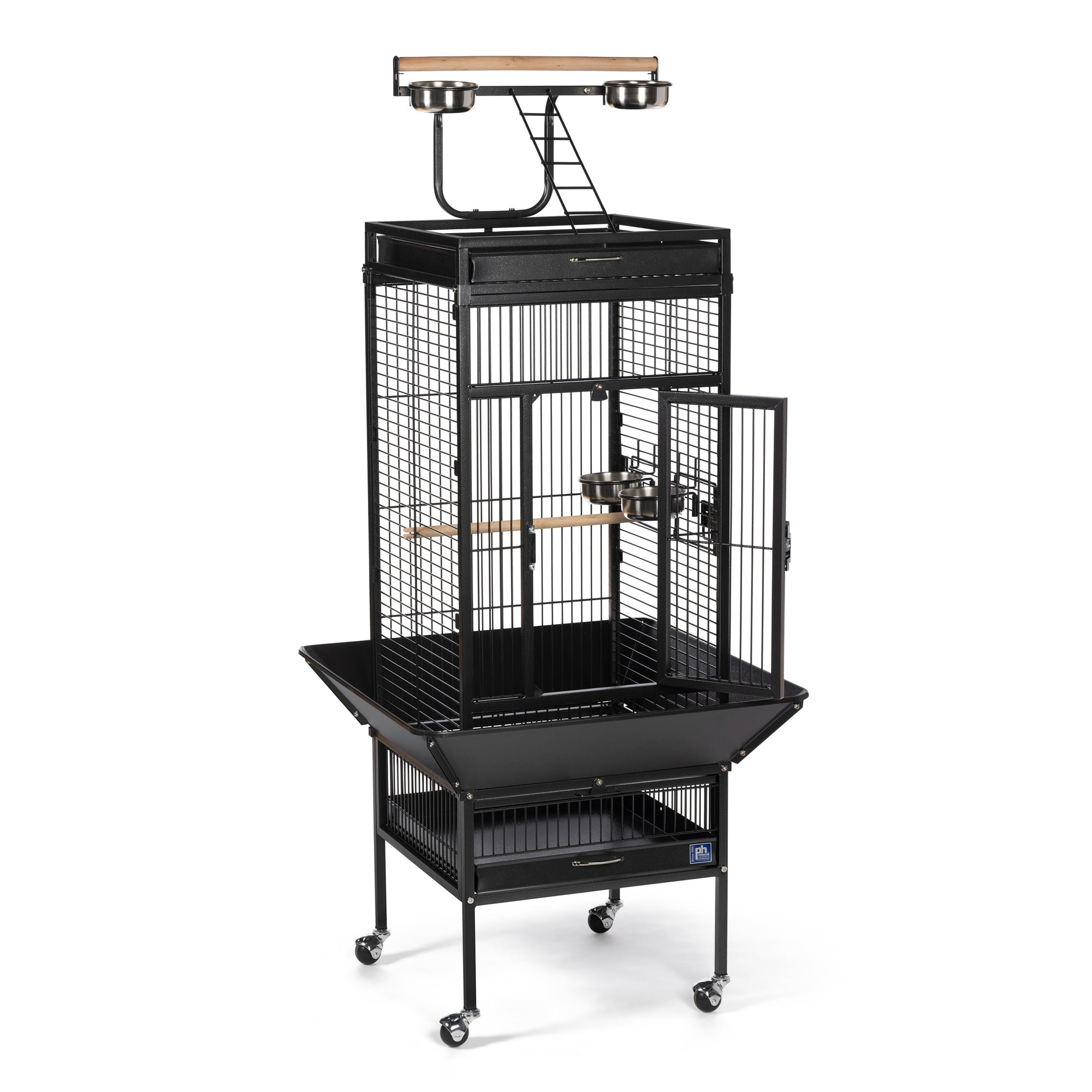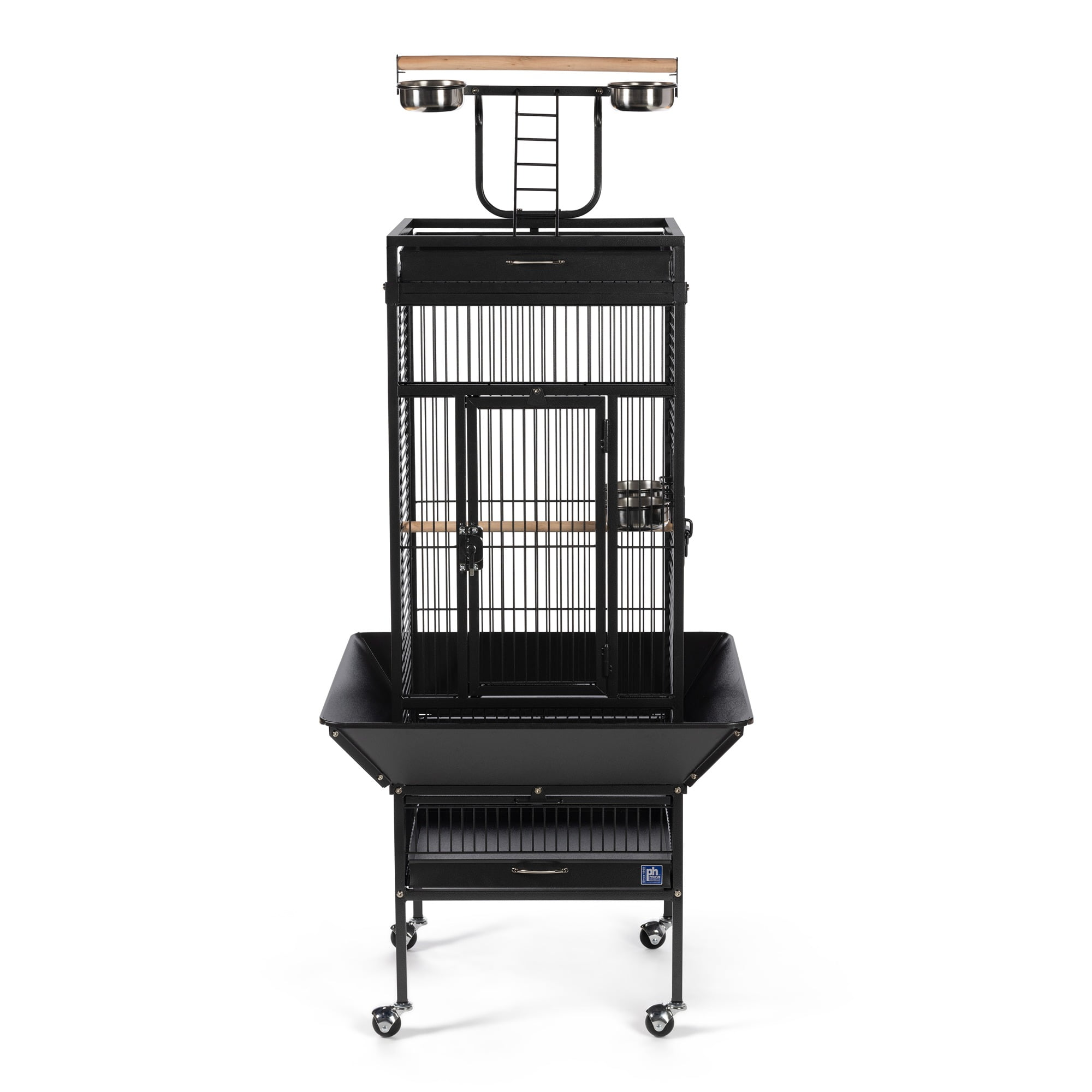 Prevue Select Wrought Iron Cockatiel Bird Cage 18″x18x57″, Color: Black: Select Cage Series Designed for cockatiels to parrots, depending on the cage size Wrought iron construction Bird cage stand with easy-rolling casters for easy mobility Choice of eight powdered-coated finishes Features a cage top playpen, rounded-corner seed guard, heavy-duty push button door lock, slide-out bottom grille and top and bottom pull-out drawers for easy cleaning Multiple finishes available Choose among the multiple finishes available to coordinate with your existing space’s color palette and decor