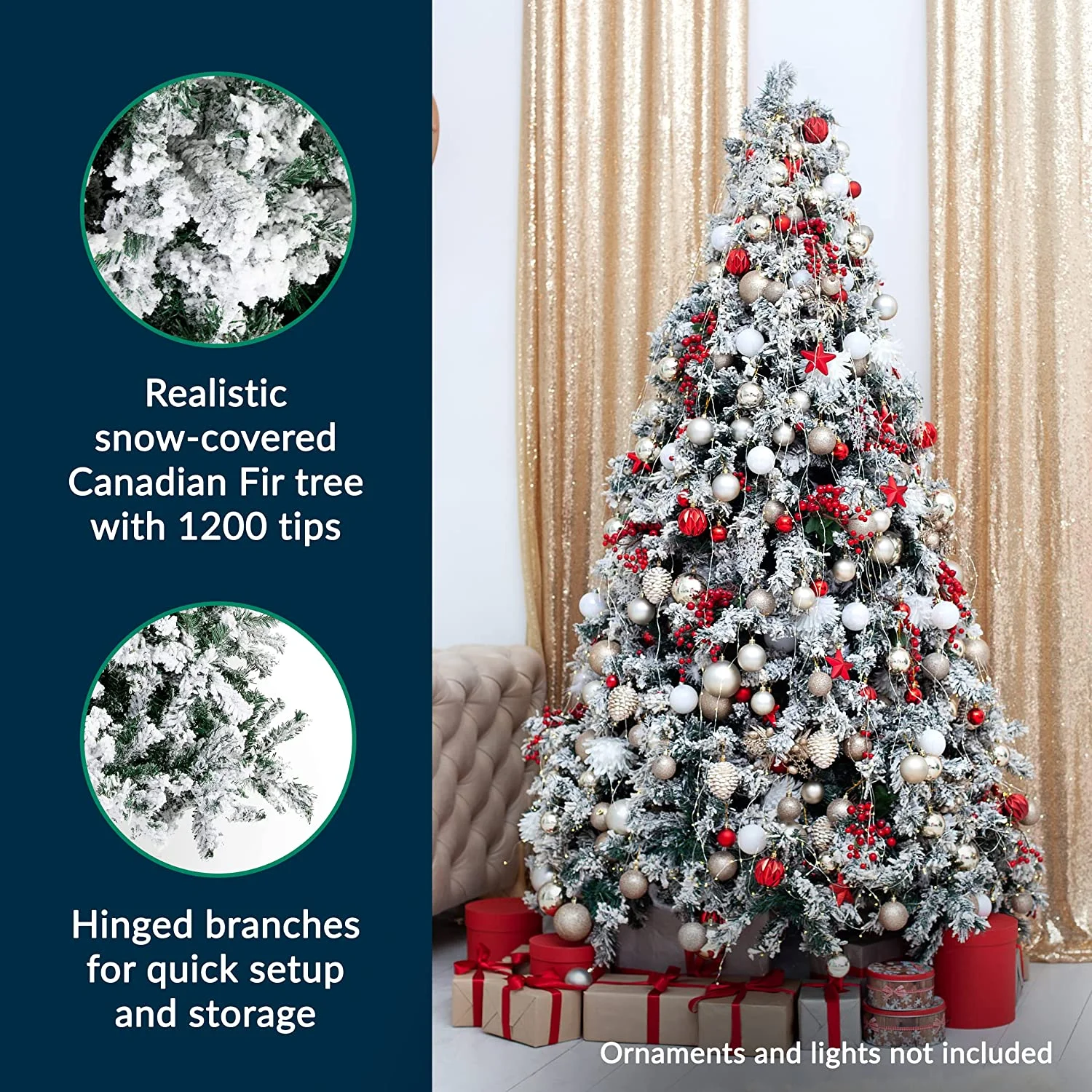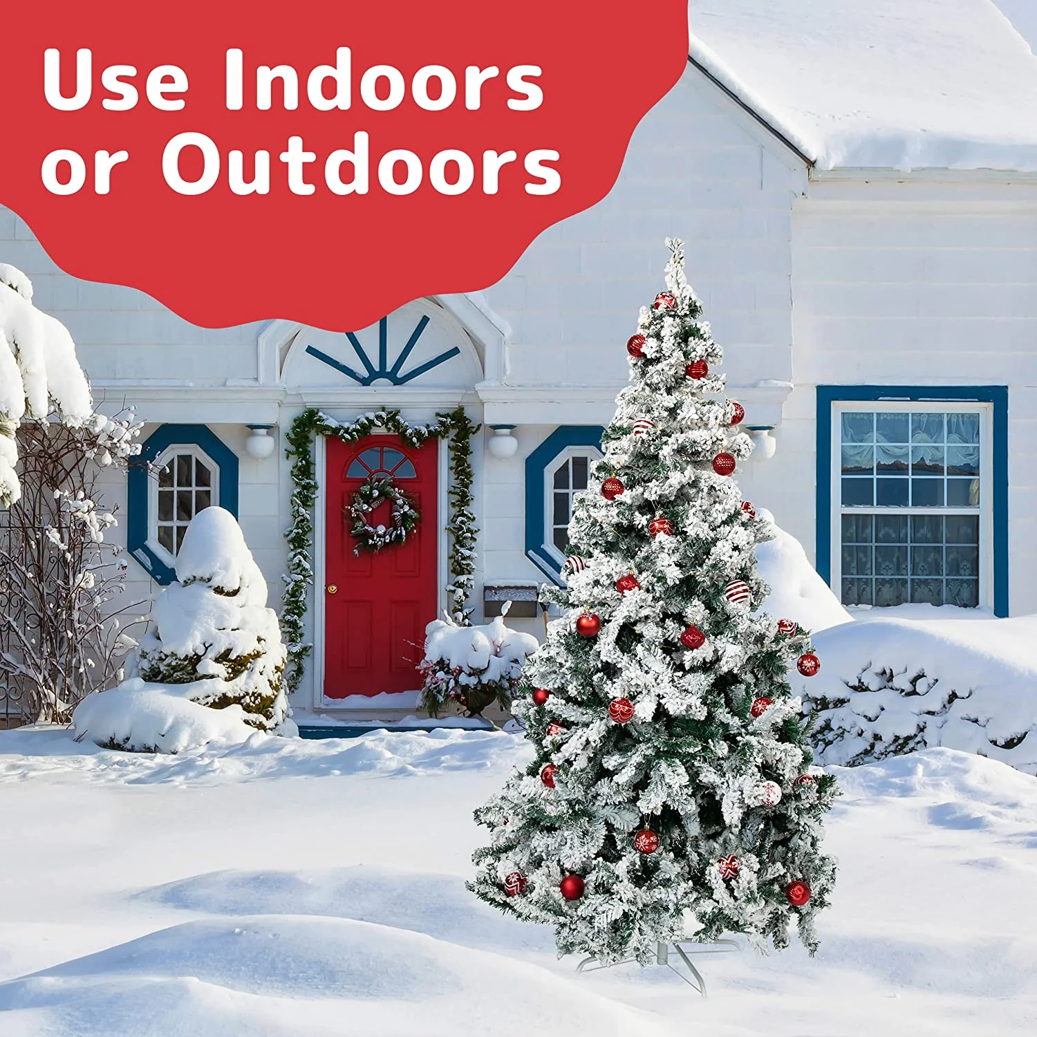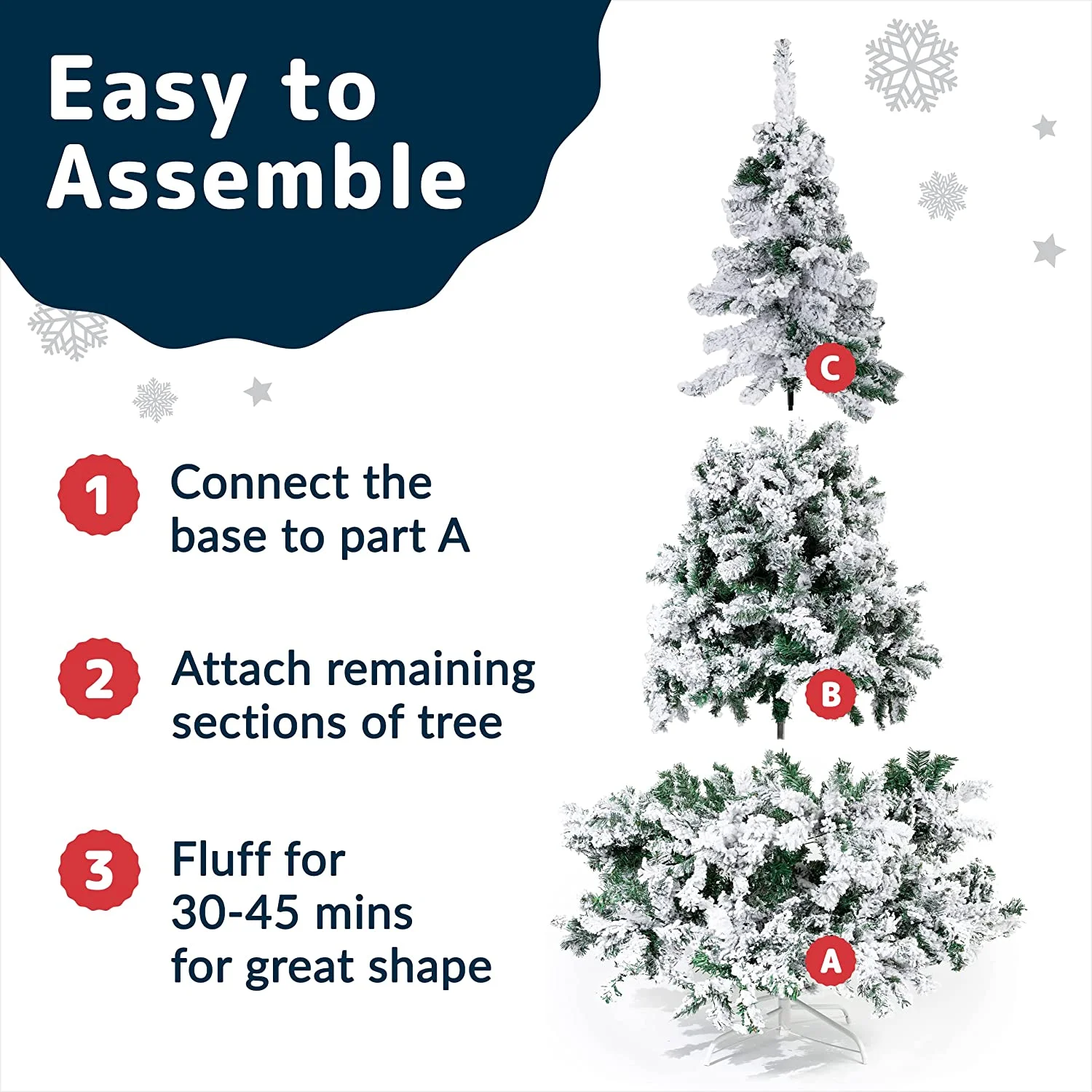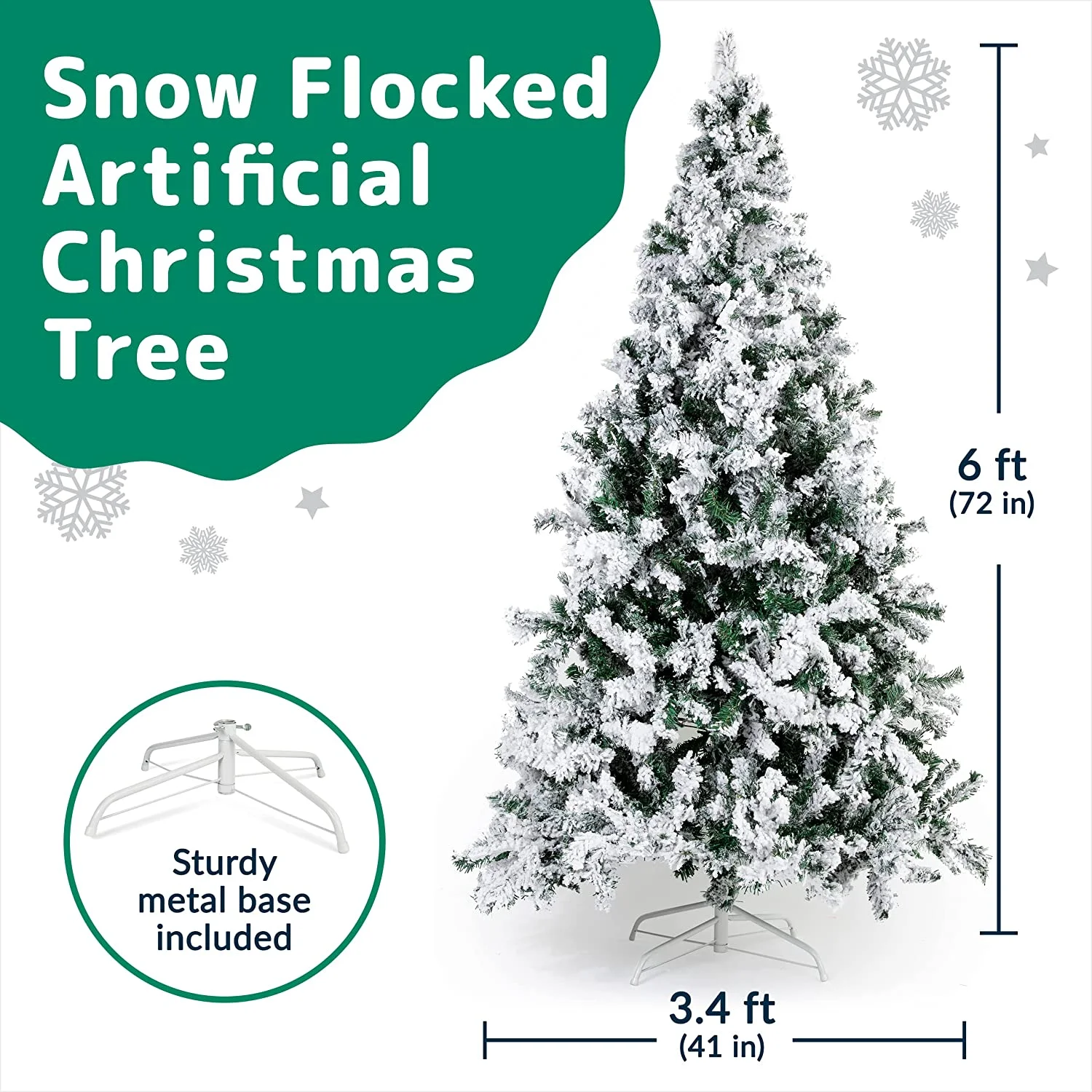 PERFECT WHITE SNOW FLOCKED CHRISTMAS TREE: Standing at 6.4-Feet Tall with 1200 tips for fullness, this hinged Snow Flocked Christmas tree is an eye-catching addition to your room decoration during the holidays. FULLNESS & HIGH QUALITY: Easy-to-fluff full branches to create the illusion of a full-bodied genuine Canadian Fir Christmas tree covered in White Snow for a White Christmas. Tree dimensions are 6.4 feet tall and 3.4 feet wide. EASY ASSEMBLY AND STORAGE: Lightweight tree is perfect for easy assembly. Christmas tree Covered with Artificial Snow is split into 3 hinged sections and a sturdy Metal Stand to allow for easy assembling, dismantling, and storing. Christmas tree can be packed in the storage carton or in a Prextex Christmas Tree Storage Bag to protect and ensure you receive a beautiful tree for the next holiday season. GREAT FEATURES FOR SAFETY: This Christmas tree covered with snow is fire-resistant and non-allergenic, perfect for hanging ornaments PERFECT POP UP CHRISTMAS TREE: Christmas tree is ideal for any setting — for home, wedding, Christmas Day, holiday, restaurant, mall, hotel, restaurant, commercial building, and shopping center decorations.
