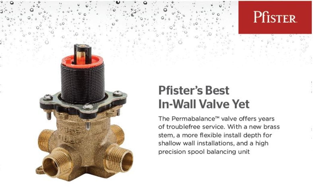 The Pfister Permabalance Valve Represents A Large Jump Forward In Tub And Shower Valve Technology. With A New Brass Stem, A More Flexible Install Depth For Shallow Wall Installations, And A High Precision Spool Balancing Unit, The Permabalance Valve Is Pfister