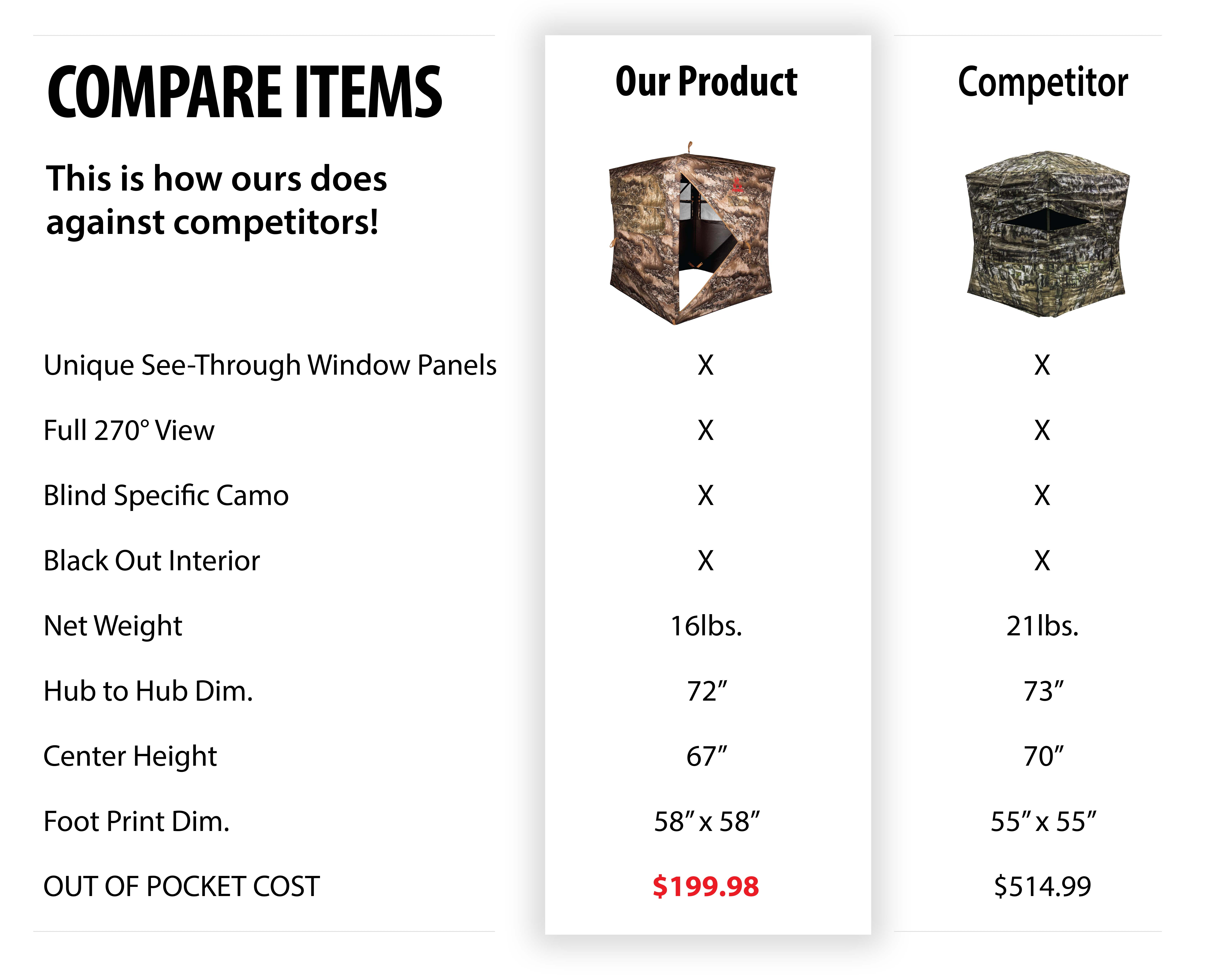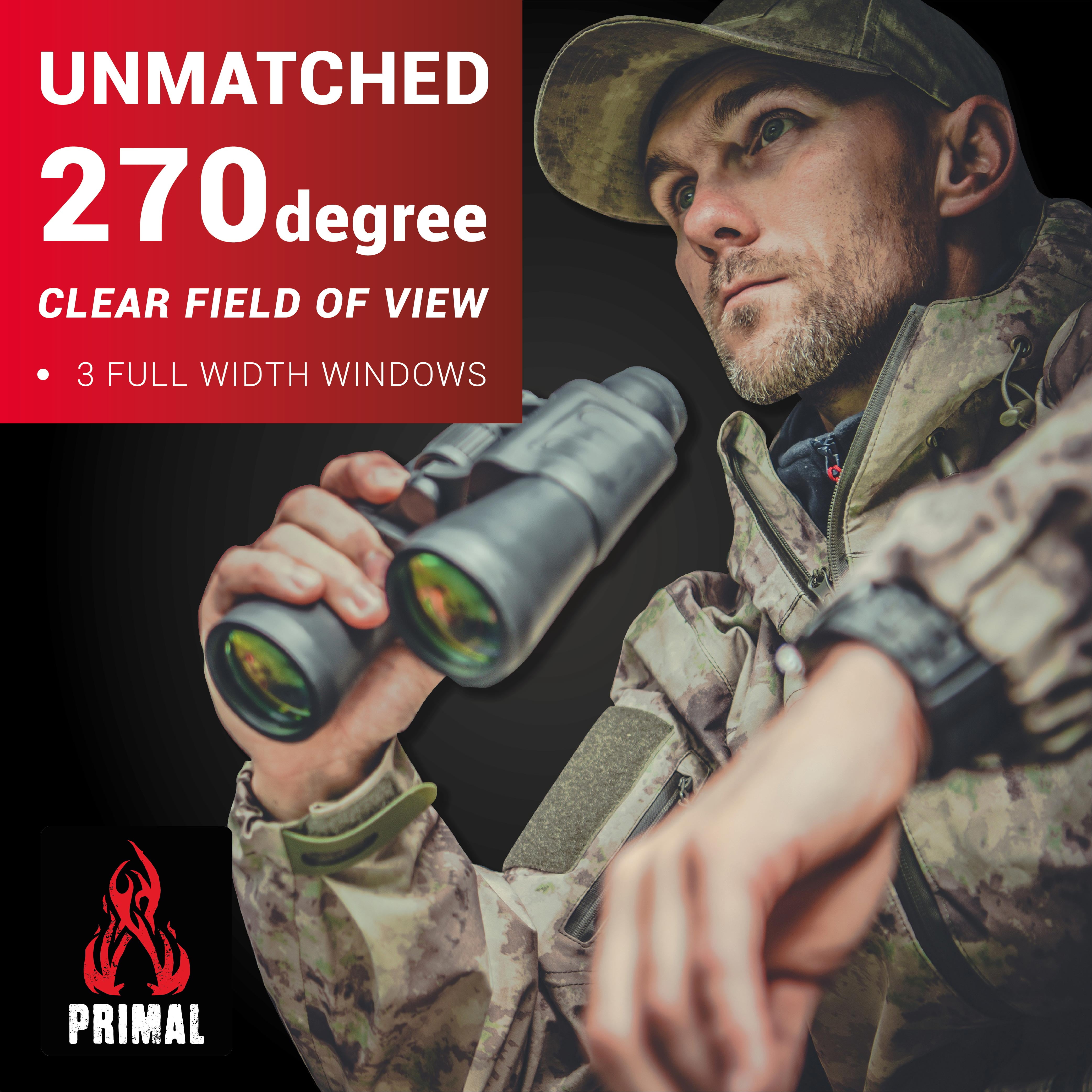 PRODUCT OVERVIEW VIDEO: SEE YOUR TARGET FIRST – 270 Degree One-Way See Through Windows so you see your prey first. CONSTRUCTED FOR COMFORT – Our 270 Deluxe Pop-Up Ground Blind has a 58″ x 58″ footprint with 67″ ceiling height. Great for a solo or group outdoor enthusiasts. LIGHTWEIGHT, PORTABLE, EASY TO SET UP – Take your Blind wherever you need to go. Primal Deluxe Ground Blinds include high wind tie downs for wind resistance, stakes, and a easy to carry backpack. HEAVY DUTY- 300D Fabric with blackout, water resistant interior Realtree EXCAPE™: EXCAPE visual detection by MATCHING your surroundings, DISRUPTING the human silhouette and CONCEALING your human form. CARRY WEIGHT- 16 lbs. PACK SIZE- 8″ x 8″ x 42″