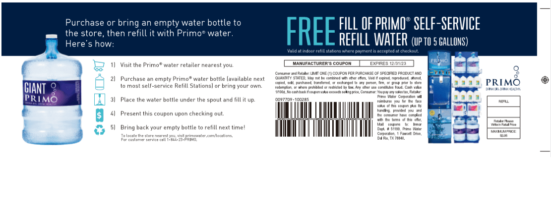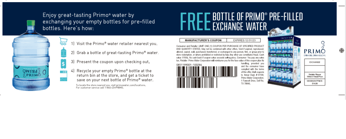 Self-cleaning function automatically sanitizes your dispenser with proven ozone technology Prevents the accumulation of harmful bacteria and germs Bottom loading design eliminates heavy lifting, flipping, or spilling Dispenses 3 temperatures: cold, cool, and hot water Electronic touch controls for easy water dispensing Quiet cooling and heating Cooling, heating, sanitizing, and empty bottle indicator lights LED night light illuminates waterspouts to help prevent spills Removable, dishwasher safe drip tray Coupons for Primo® Water included (*up to a $14.99 value)