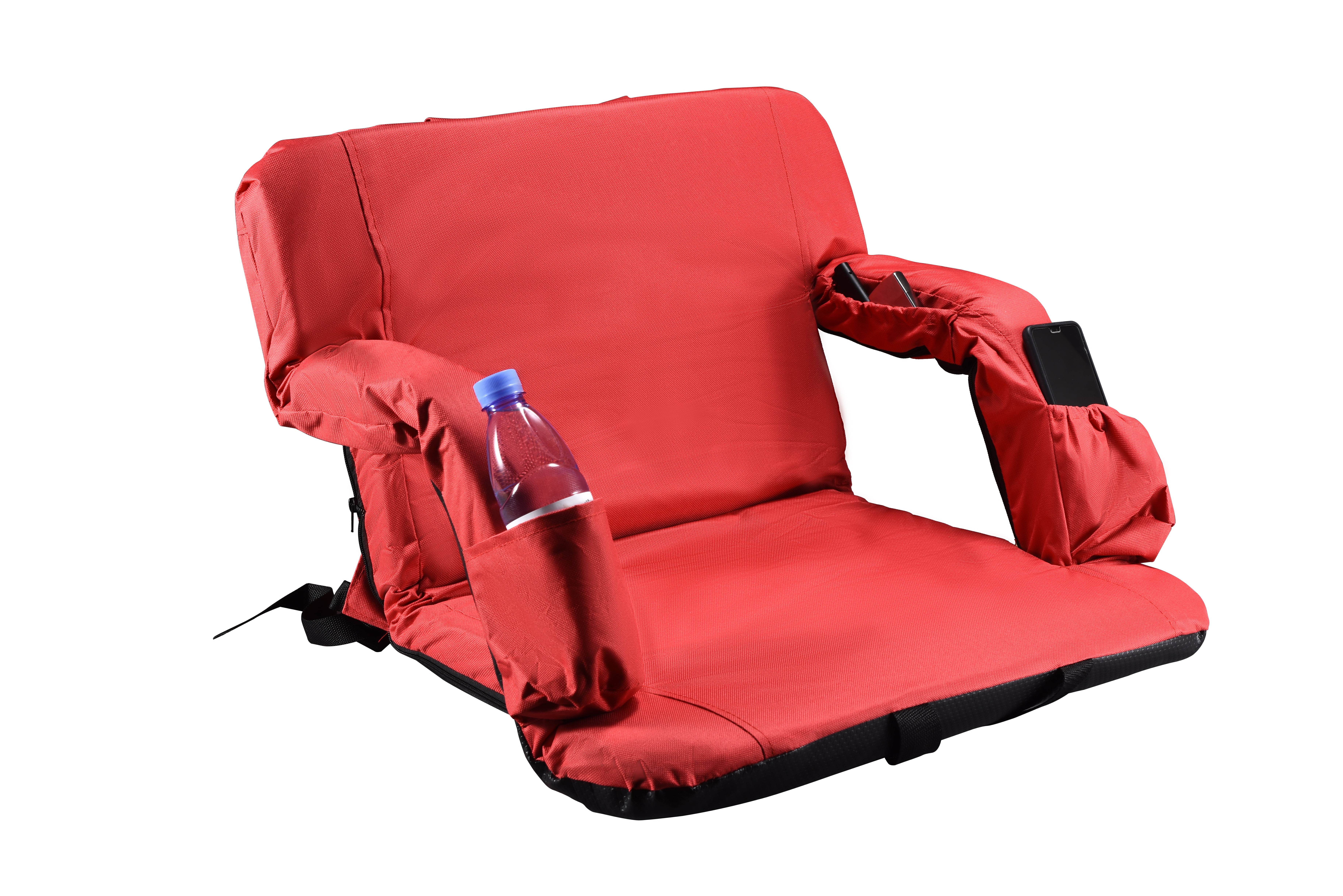 PRINIC RED Stadium Seat Chair- Wide Bleacher Cushion with Padded Back Support, Armrests, 6 Reclining Positions and Portable Carry Straps