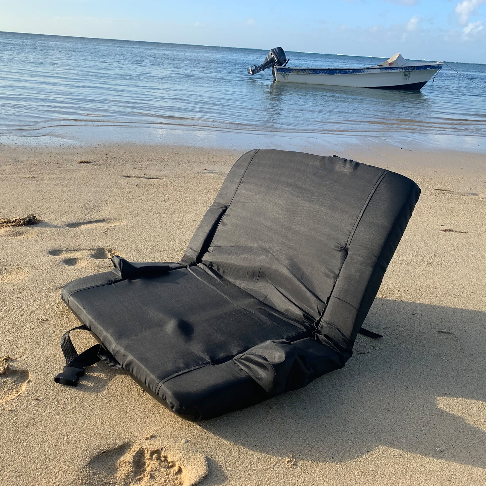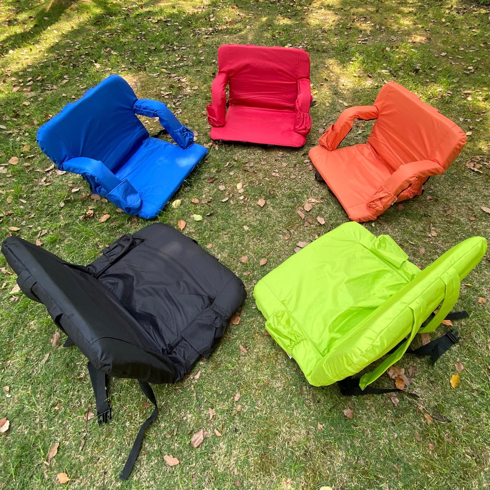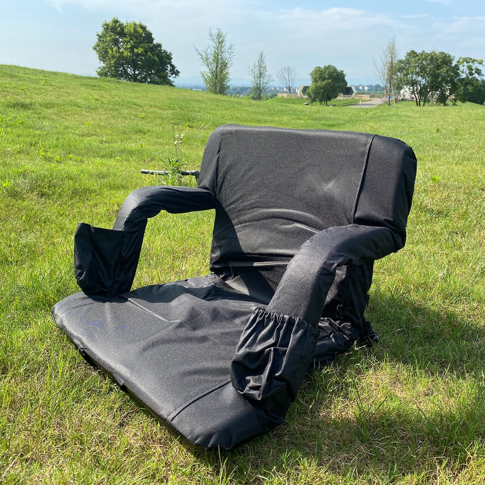 ✔️ comfortable and safe:Built with sturdy steel frame, the seats are padded with 1.2 inch thickness foam and covered with durable fabric, providing you with pillow-like coziness. The bottom is made of non-slip waterproof rubber, and the bottom strap can be securely attached to the bench preventing slipping off. ✔️collapsible and portable: The stadium seat can be easily folded up. Two shoulder straps and 8.8lbs light weight allow you to carry it like a backpack, perfect for fishing, picnics, beach, stadium bleachers, outdoor concerts and other outdoor events. ✔️6 reclining positions and 2 width positions:The backrest can be adjusted in 6 different angles, providing the most comfortable and suitable position. You can use it with handrails to rest arms comfortably, or lower the armrests to get more spacious seating. ✔️ Convenient chair pockets: Always keep your possessions within reach. Two front pockets can hold water bottles ,drinks and snack. Side pockets holds valuable phones, keys, wallets etc. The large back zipper pocket are made for extra storage.