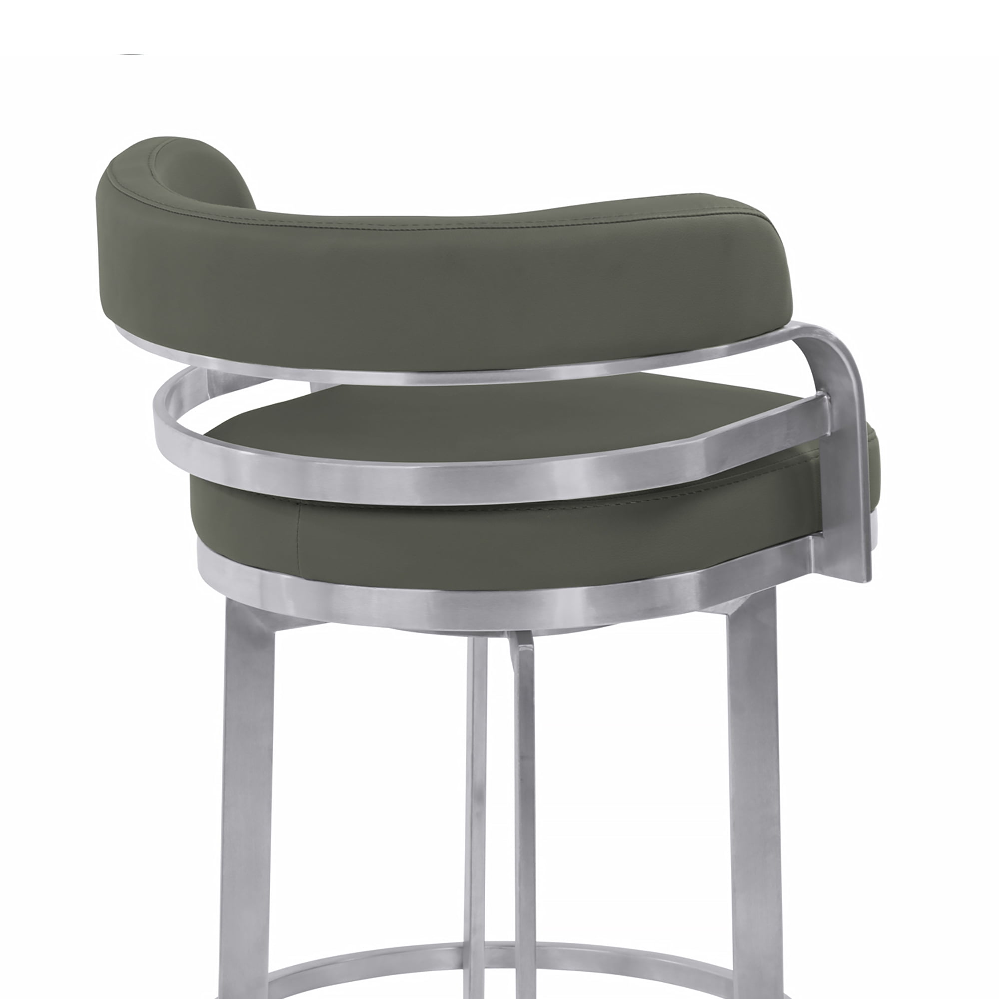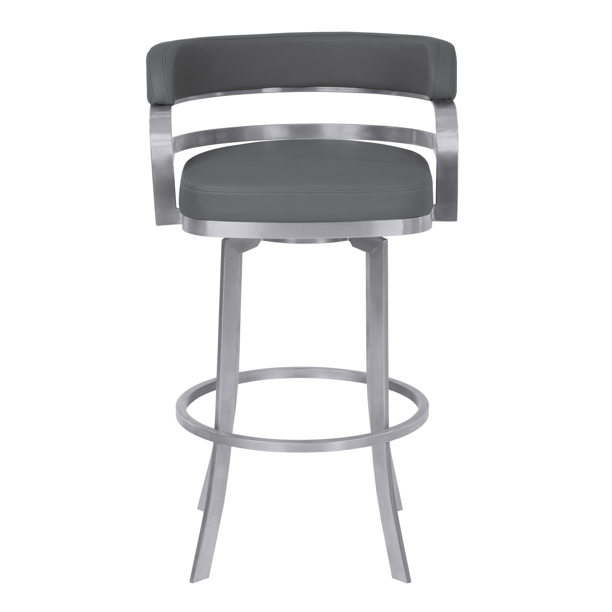 Prinz 30″ Bar Height Swivel Gray Faux Leather and Brushed Stainless Steel Bar Stool
