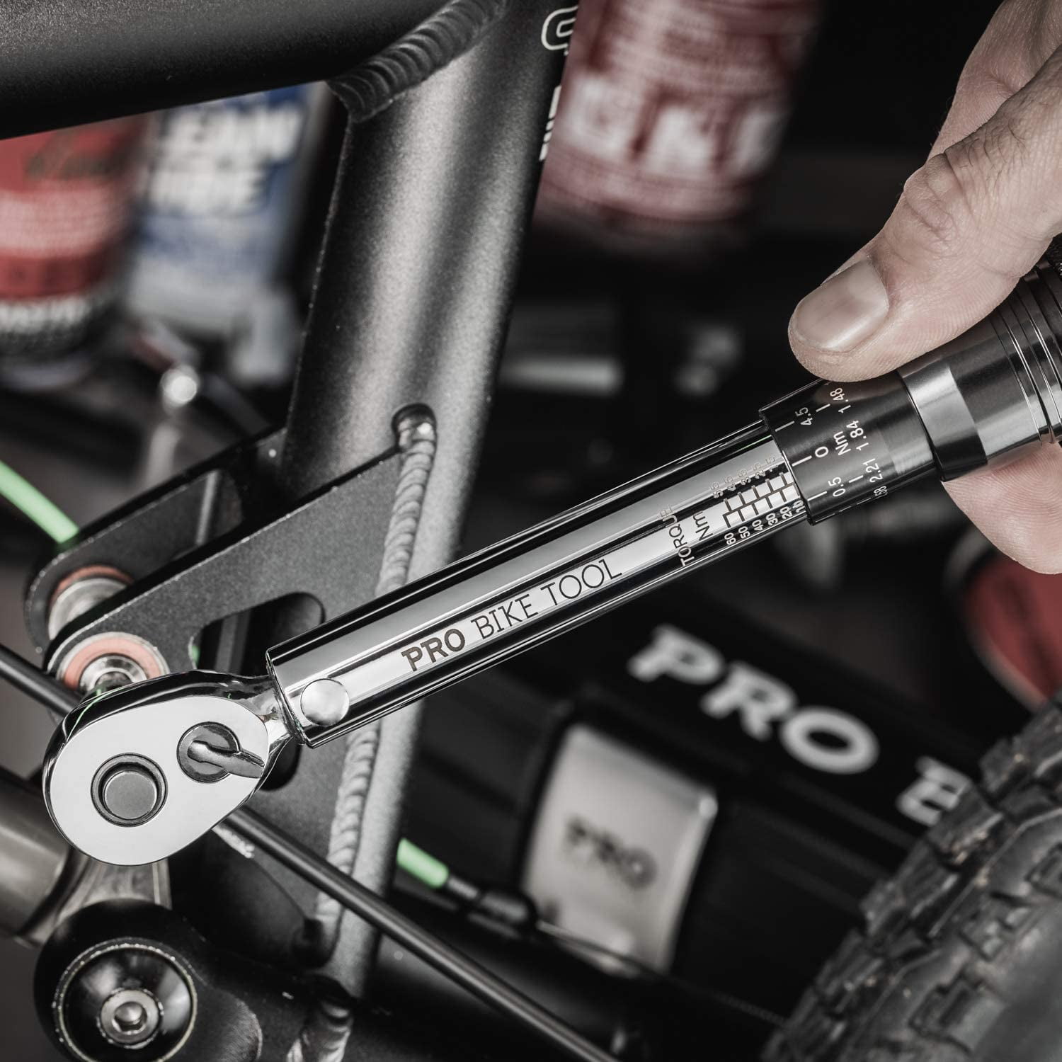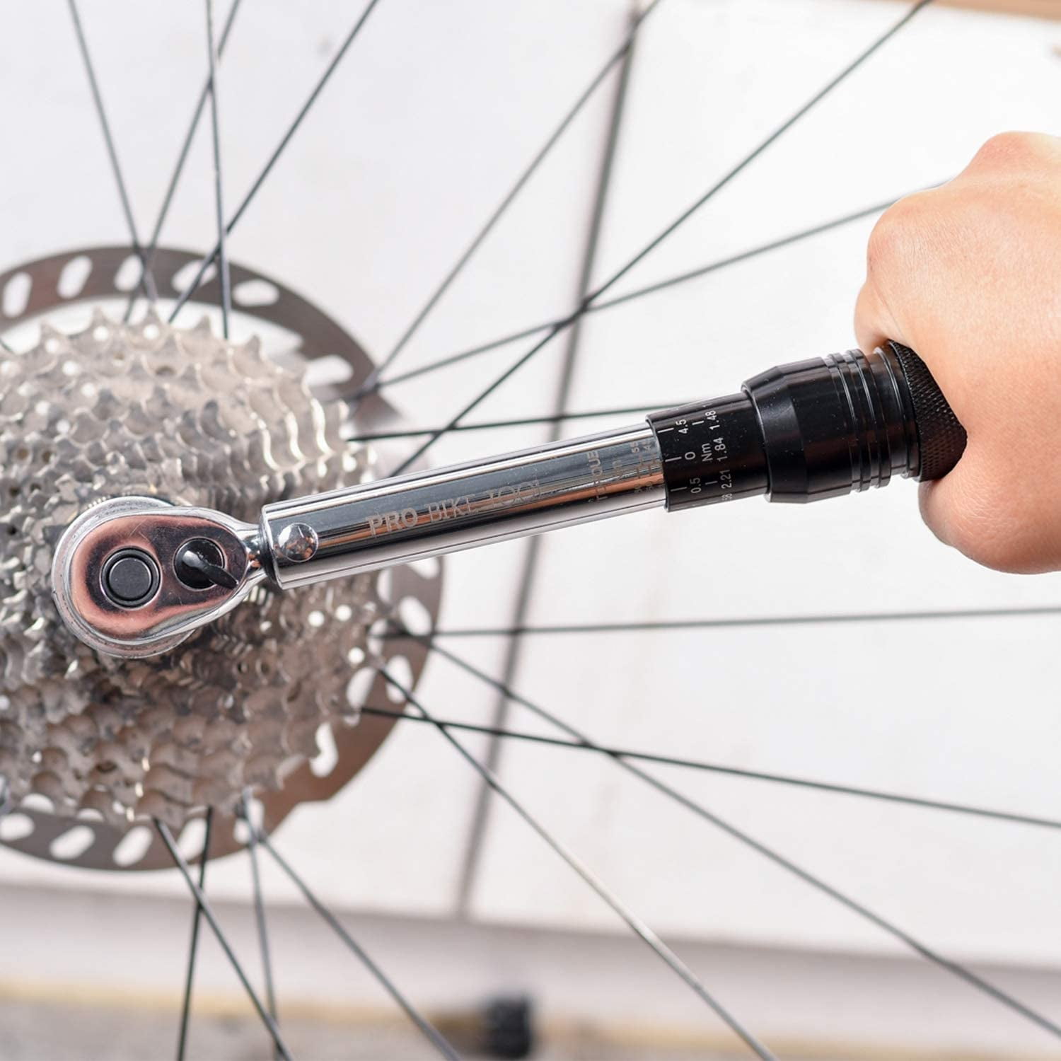 You can Install components with calibrated precision – 10.0 to 60.0 Newton Meter (88 to 530 inch pounds) torque range with micro adjustment to 0.5 Nm. PRO BIKE TOOL 3/8 Inch Drive Click Torque Wrench Set (10 to 60 Nm) was designed for higher torque setting repairs and installations including: bottom bracket, cassettes, cassette lock ring, crank – sets, bolts & arms, pedals and disc brake rotors. Over-tightening bolts can cause expensive damage to your bike. Applying too little torque can lead to bolts working loose or not doing their job. Our Torque Wrench 3/8 inch Setdrive dual-direction torque wrench driver removes the guesswork, making it easy to follow the manufacturer’s recommended settings. Each hand tool is shipped pre-calibration tested for accuracy, +/- 4% (clockwise) and +/- 6% (counter clockwise). Torque wrench length: 27.7cm/10.9″, width: 3.1cm/1.22. Smooth and precise operation. High-contrast Nm scale is easy to read. Right Tools For The Job – Includes 3/8” to ¼” adaptor, 3/8” to ½” adaptor and 75mm extension bar. Bespoke protective case to keep the adjustable torque wrench and tool bits stored safely, also includes ‘storage’ section inside case to store bolts when using the wrench. Reversible 72-tooth ratchet head measures torque in clockwise and counter clockwise directions.