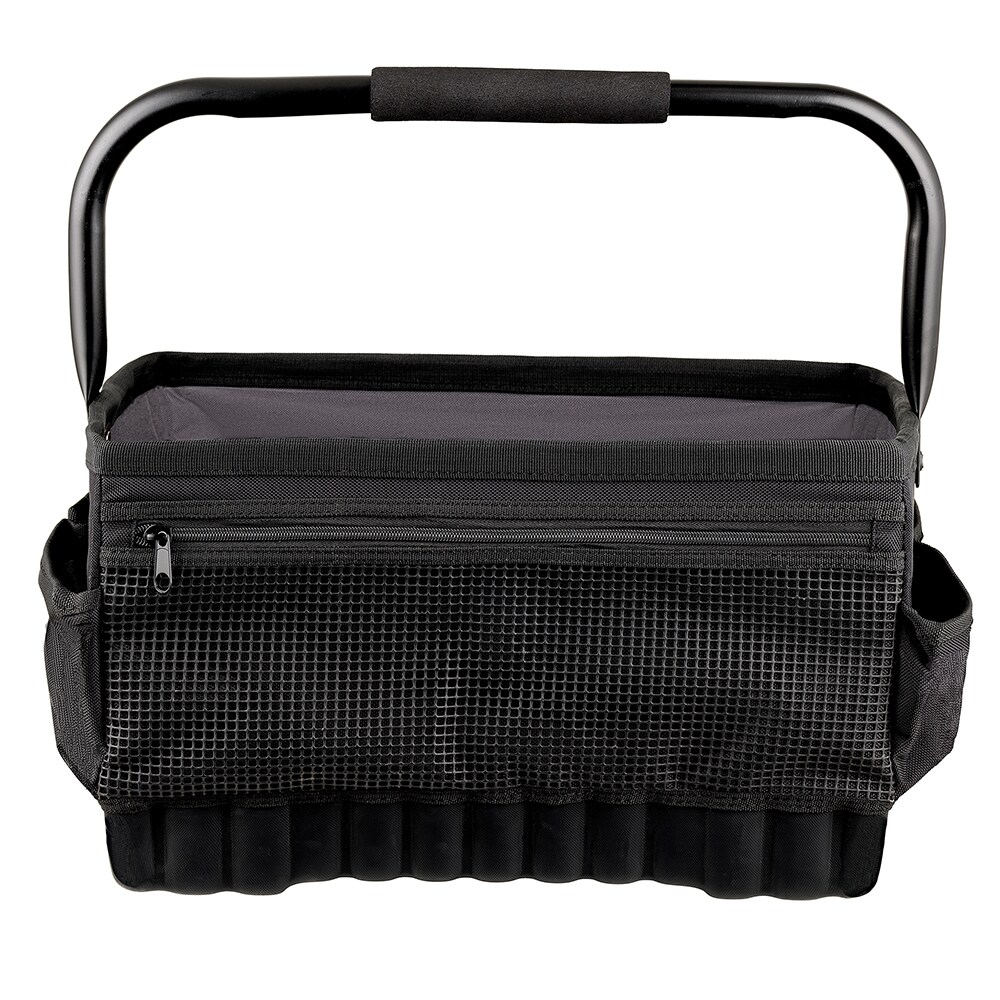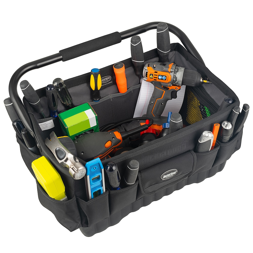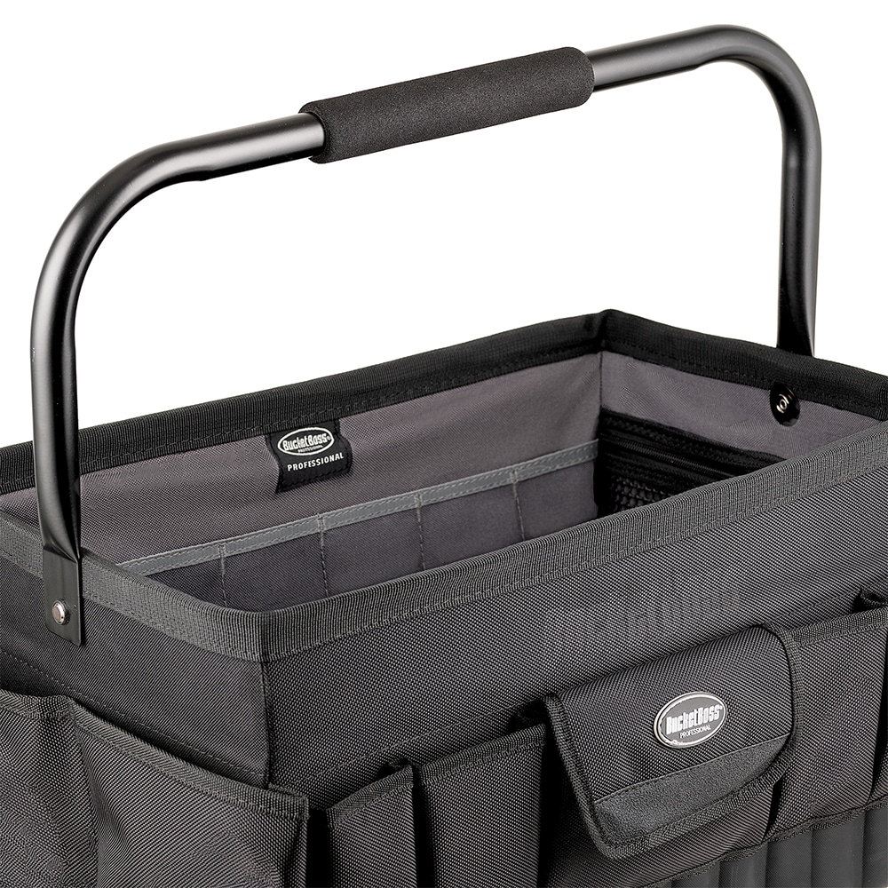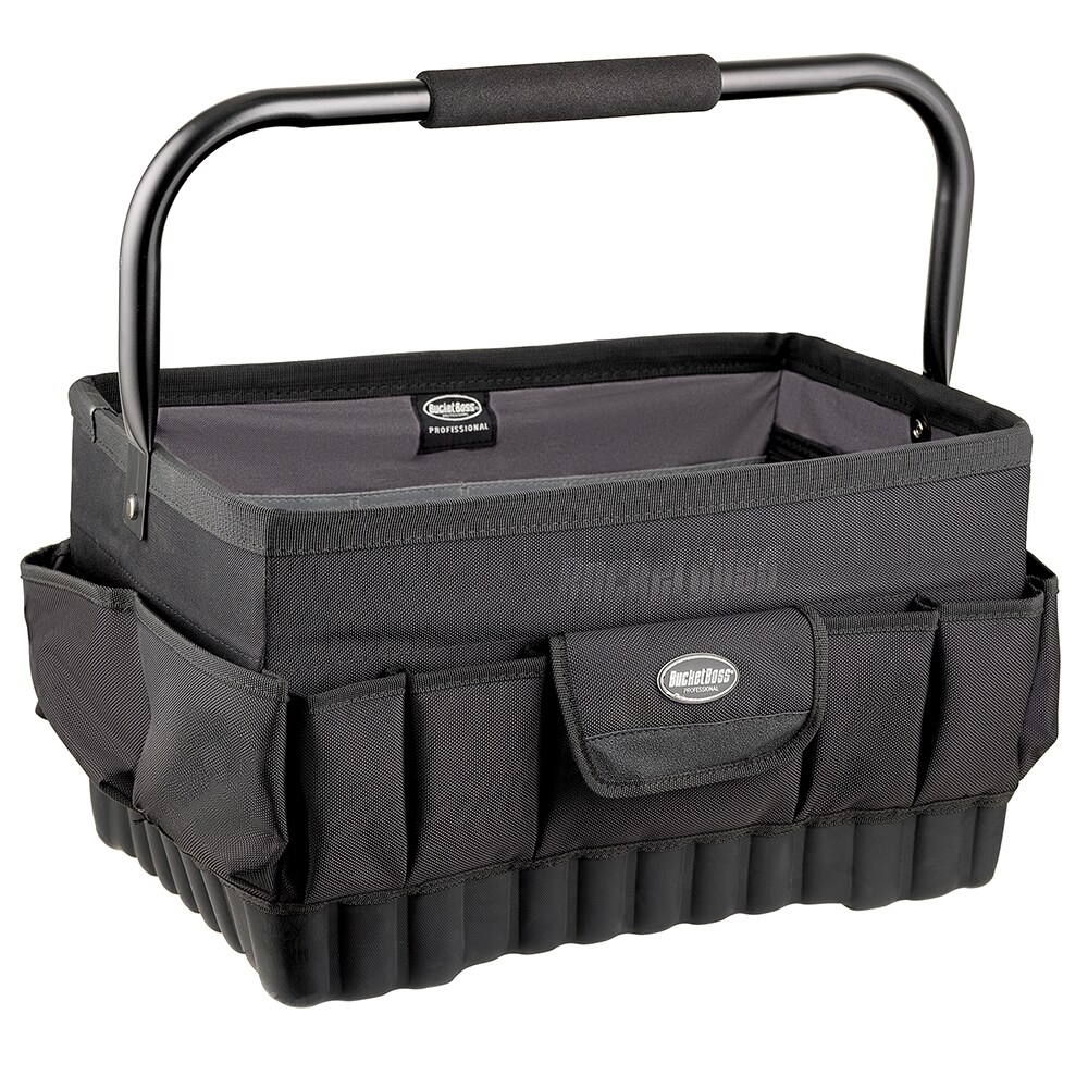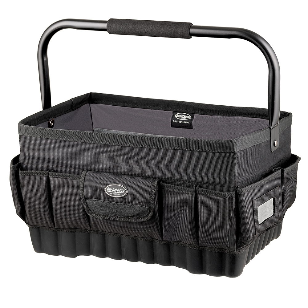 From the Bucket Boss® Professional Series, the Pro 18 in. Tool Tote is made for the professional, constructed with heavyweight 1680 2-ply poly fabric and boasts a molded, waterproof bottom to protect bag contents. The walls of the bag are reinforced to maintain a rigid shape. Other features include 22 total pockets, a steel rotating handle with a padded foam grip and an open interior with 31 liters of storage space.