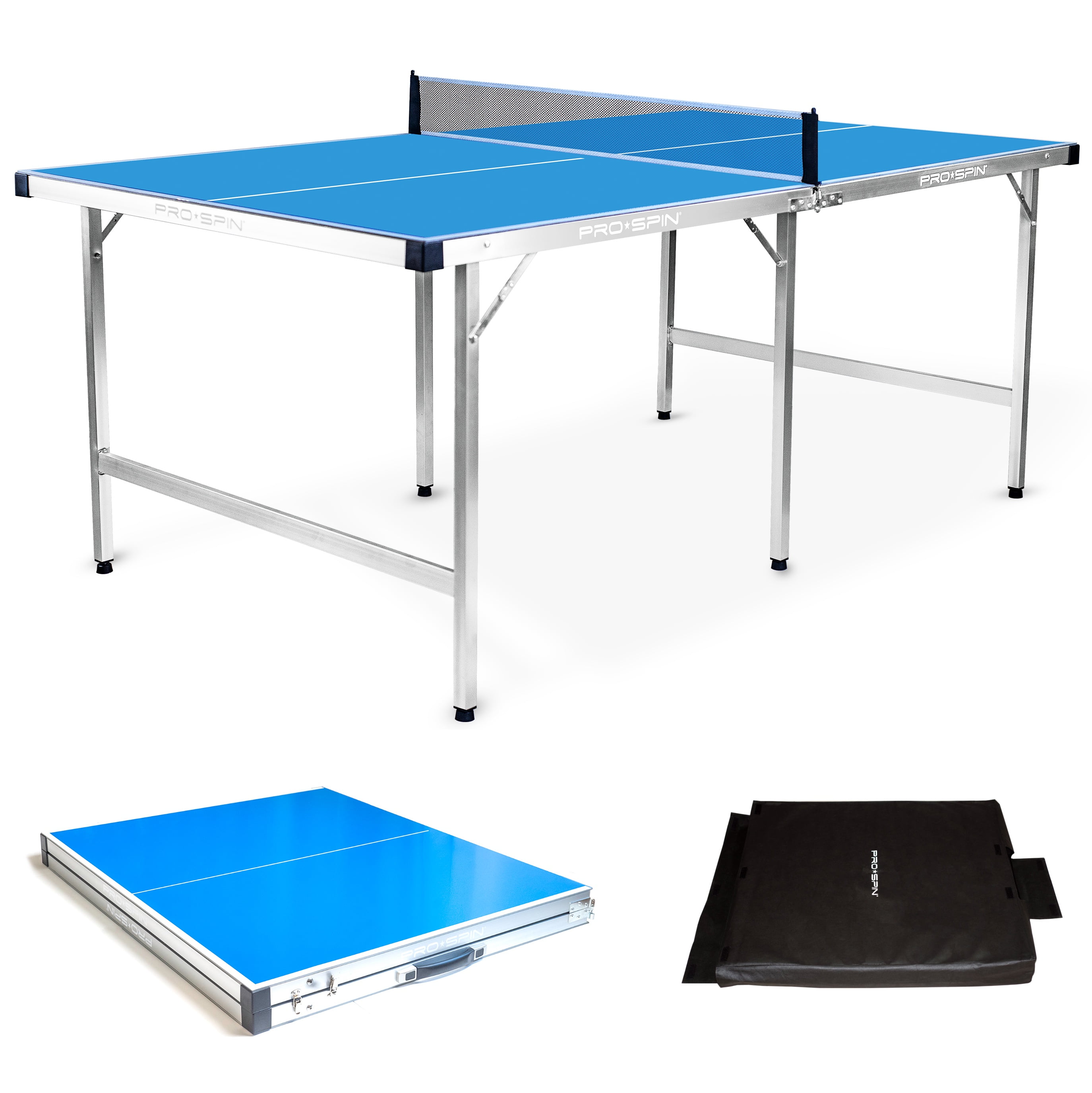 COMPLETE SET: The PRO-SPIN Portable Ping Pong Table Set now includes our best-selling 2-Player set of High-Performance Ping Pong Paddles and Balls and a table cover to prevent scratches and dust when not in use. 100% PRE-ASSEMBLED: The Pro-Spin Sports Midsize Portable Ping Pong Table is 100% pre-assembled and ready to play! It sets up easily and folds in half for easy storage. Regulation-height table measures 71″L x 41″W x 30″H & weighs only 35lbs. FOLDABLE & PORTABLE: This gaming table is compact & easily fits under a bed or closet, perfect for small spaces. Just fold the legs in, fold the table in half & secure the metal clasp. Comes with an easy-to-carry handle. Folded dimensions: 35.5″L x 41″W. This indoor and outdoor gaming table is weatherproof and rustproof. HIGH-PERFORMANCE PING PONG PADDLES & BALLS: The High-Performance Essential Ping Pong Set includes 2 carefully constructed high-performance paddles. Each paddle is made with pips-in rubber, 1.8mm of sponge, and 7 layers of premium wood. These balls are 3-star quality for a consistent bounce, incredible spin, and extreme durability. FAMILY FUN: Add some friendly competition to family game nights with Pro-Spin’s midsize table. A perfect gift for kids, teens, & adults. Gift it for birthdays, weddings, graduations, Valentine’s Day, Christmas, Mother’s Day, Father’s Day, camping, fishing trips, or any other occasion. With regulation height and mid-sized convenience, it makes enjoying fun table tennis action possible, even in tight spaces.