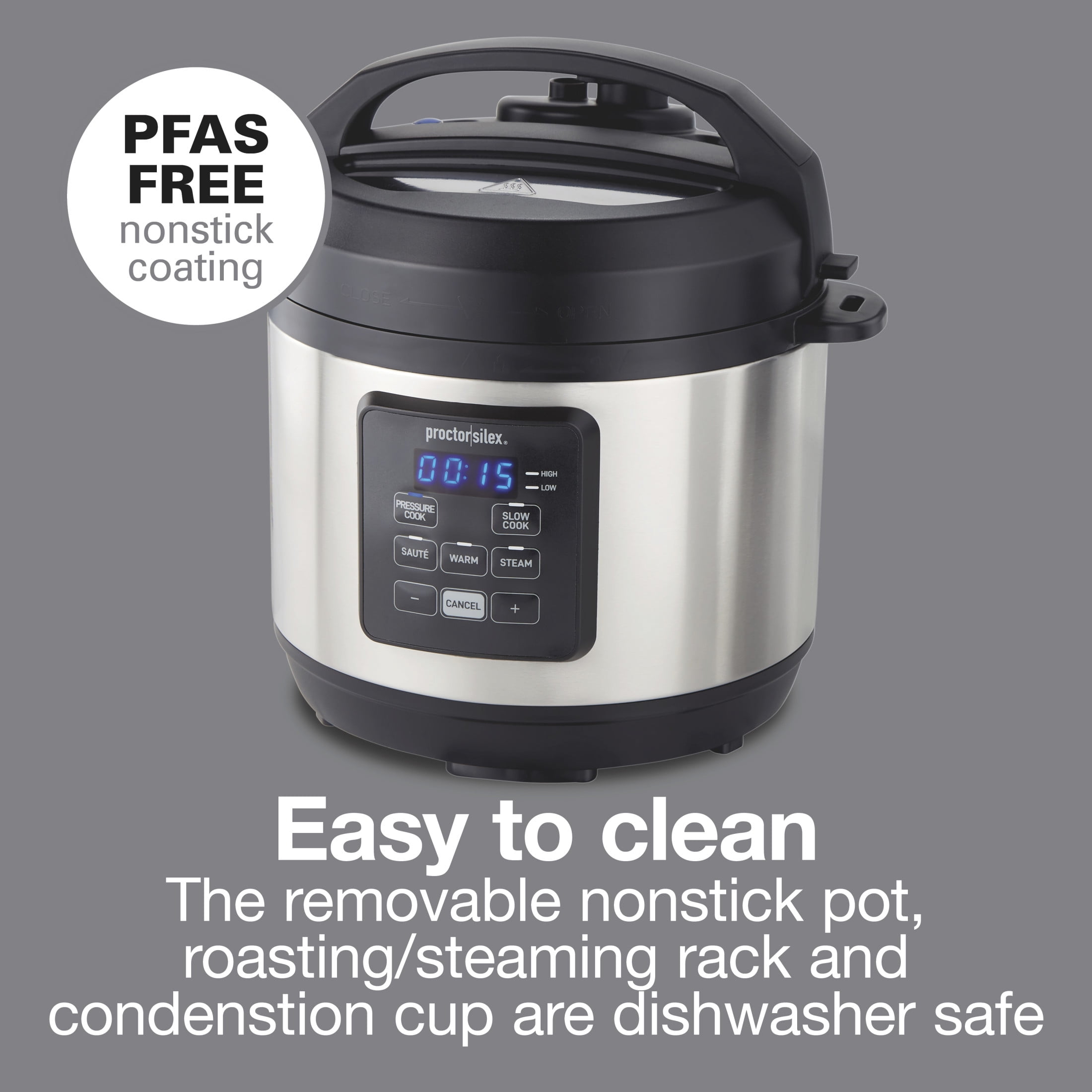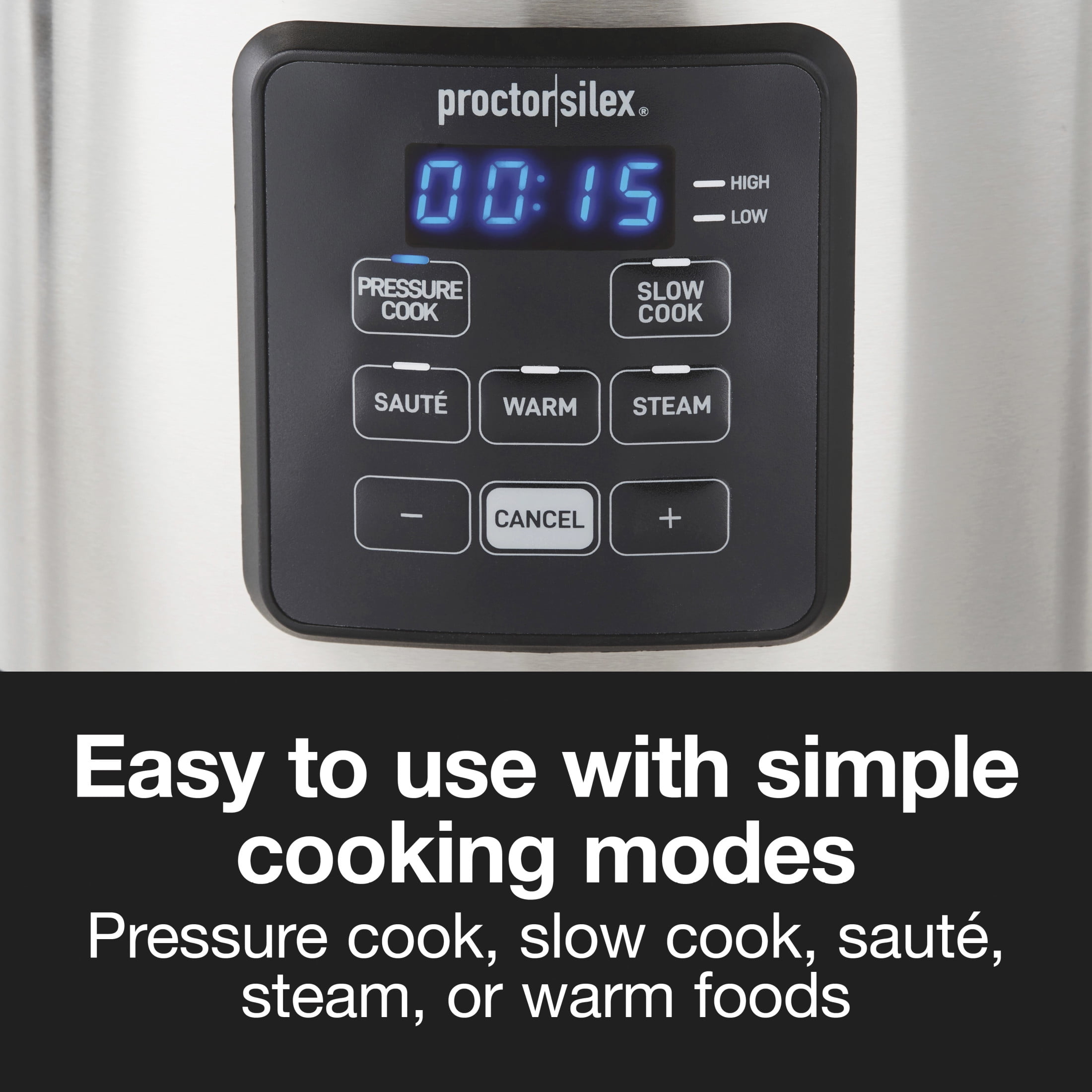 Proctor Silex 3 Quart Simplicity Pressure Cooker, Multi-Cooker, Slow Cooker, Steamer, Sauté, Rice Cooker, True Slow Technology, 34503