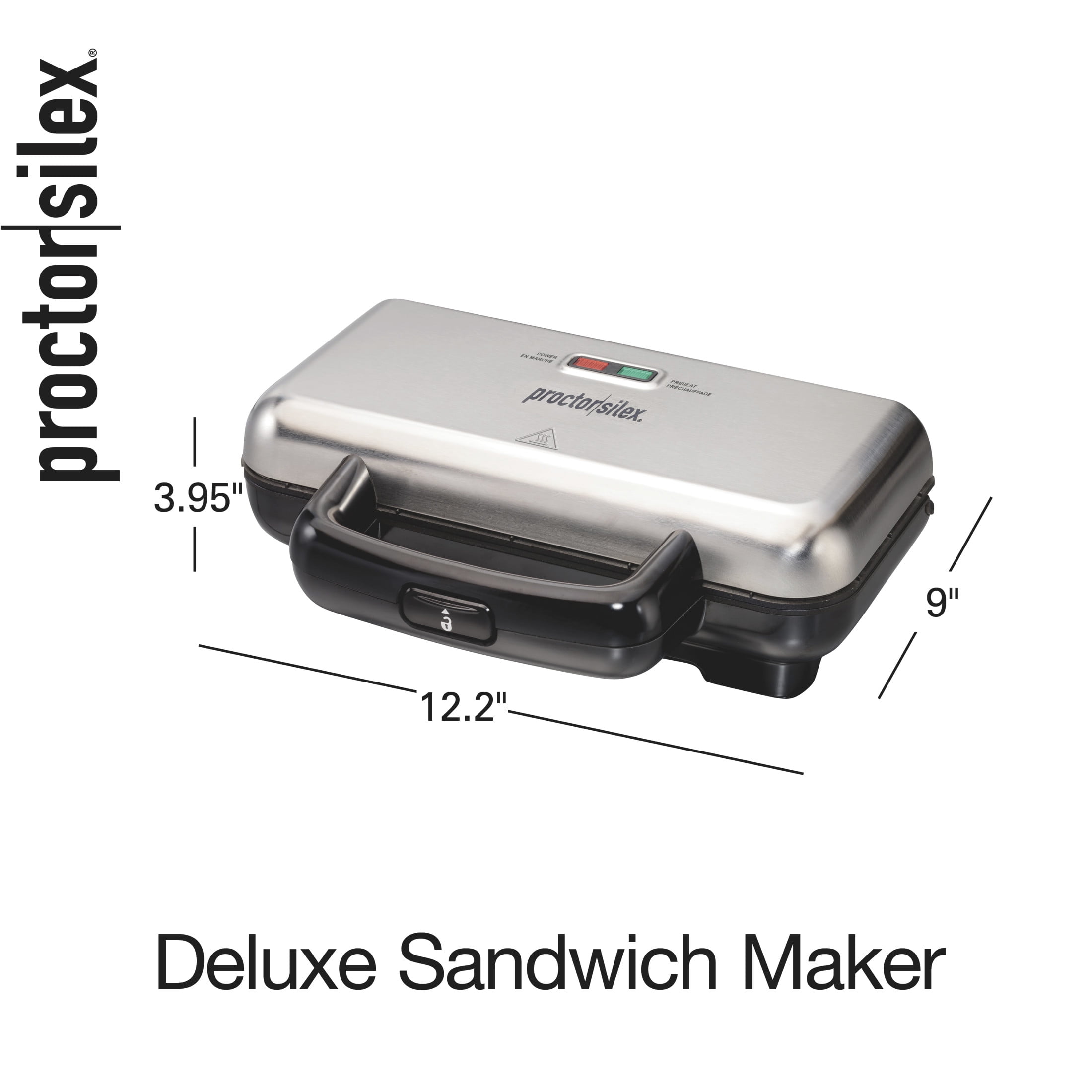 Proctor Silex Deluxe Hot Sandwich Maker with Nonstick Plates, Stainless Steel and Black