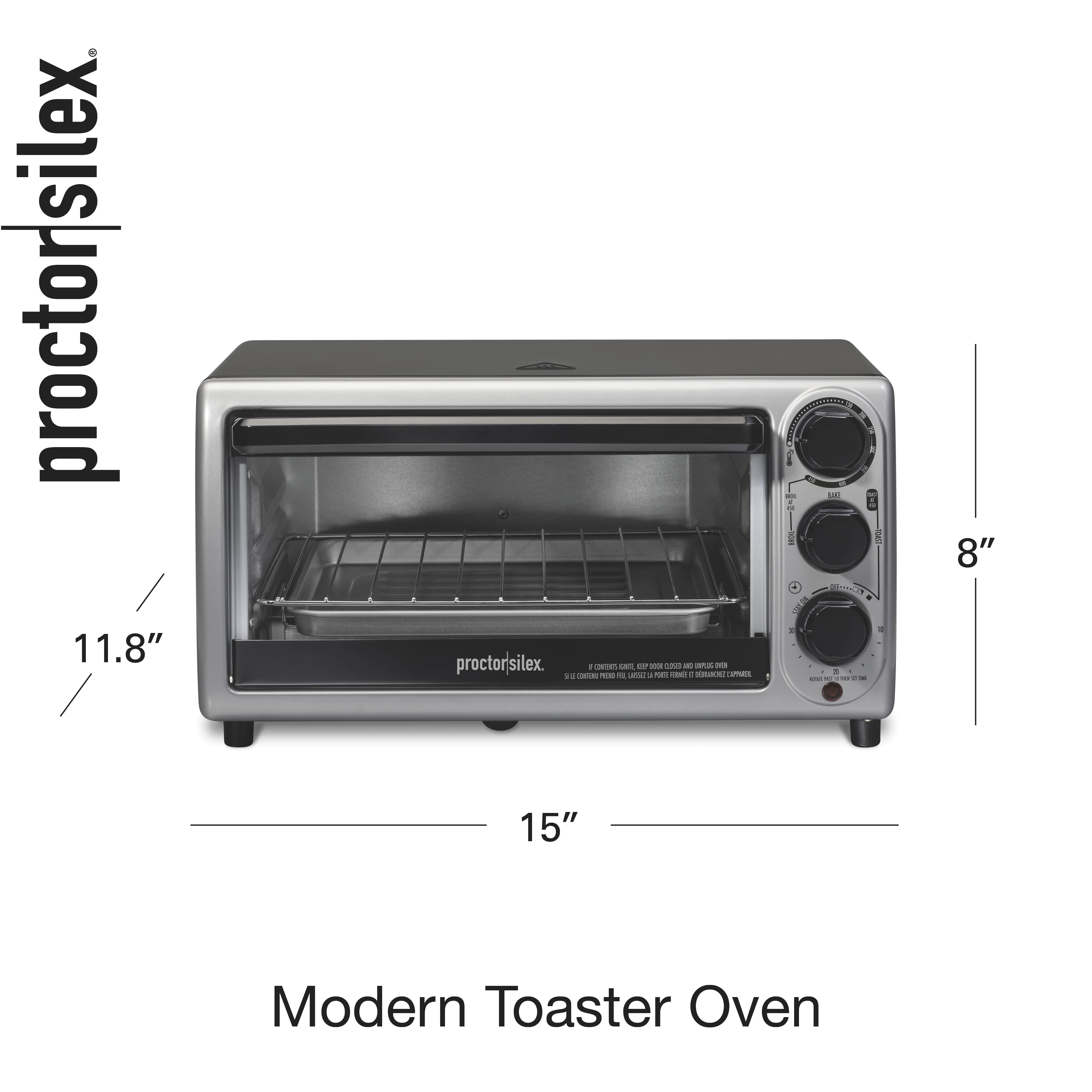 Proctor Silex Modern Toaster Oven, 1100 Watts, Black with Silver Accents, 31122