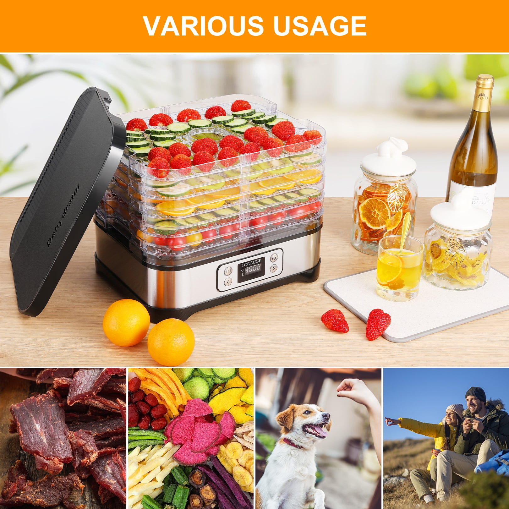 Professional Food Dehydrator Machine, Jerky Dehydrator with Timer, Five Tray and LCD Display Screen, Electric Multi-Tier Food Preserver for Meat or Fruit Vegetable Dryer