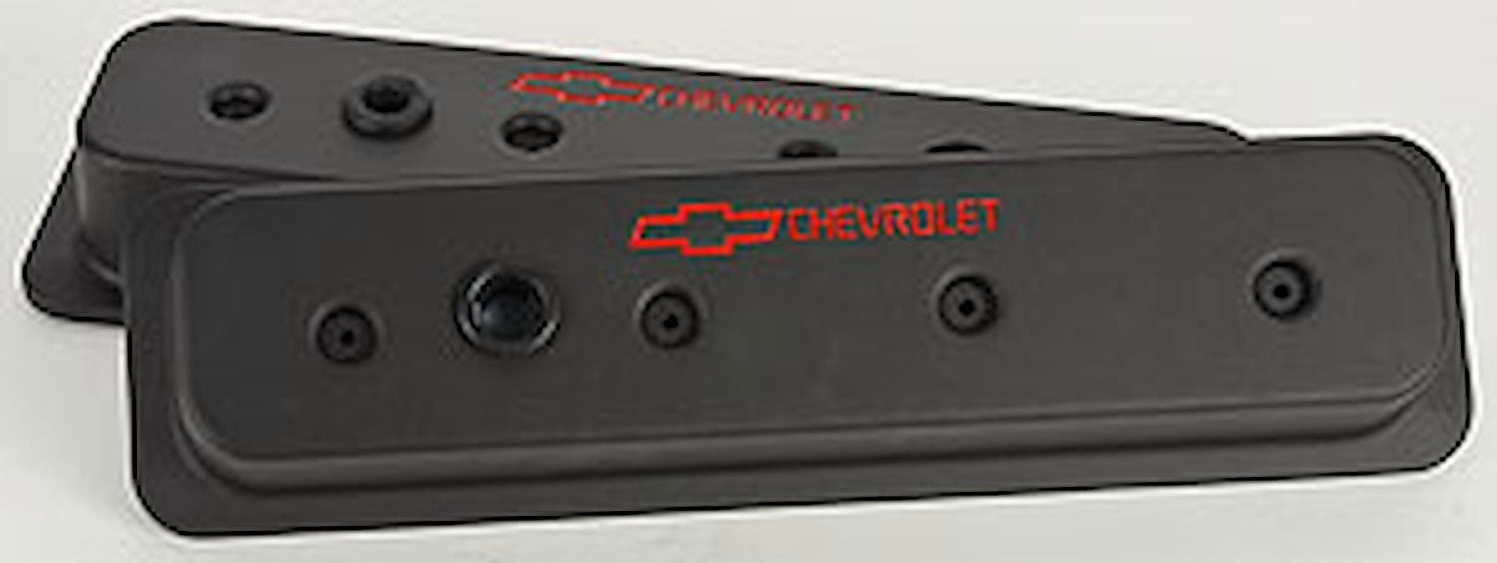 Features Get rid of those boring, old valve covers and put on a set of GM-licensed die-cast aluminum Chevrolet valve covers from Proform These premium covers feature stout die-cast aluminum construction with thick gasket rails to resist unwanted oil leaks They are equipped with GM-designed baffles, so you can be sure they’ll work well The covers have recessed Bowtie and Chevrolet logos that are inlaid with classic Chevrolet redSpecifications Color: Black Weight: 21.8 lbs – SKU: MYRD19535