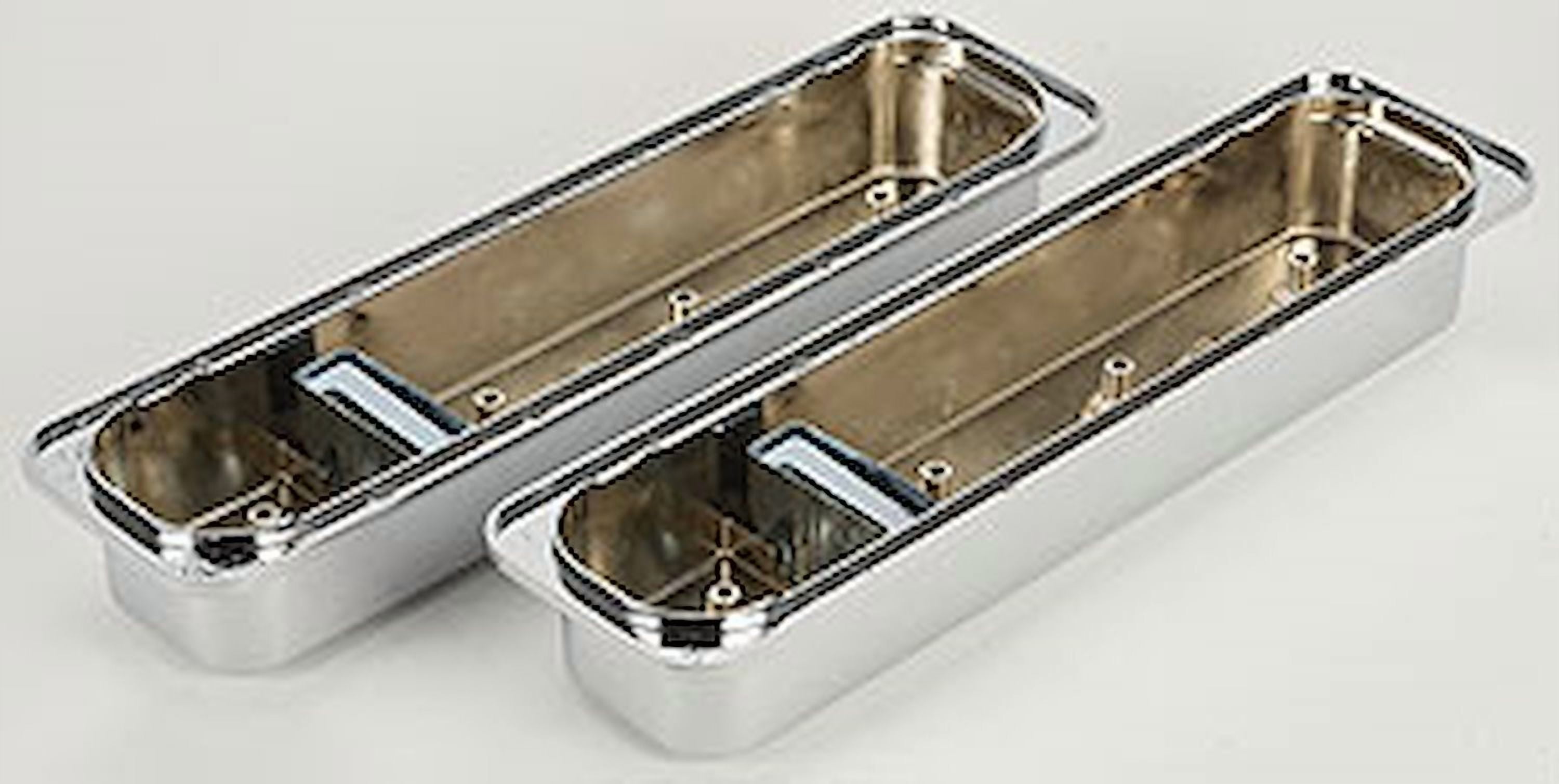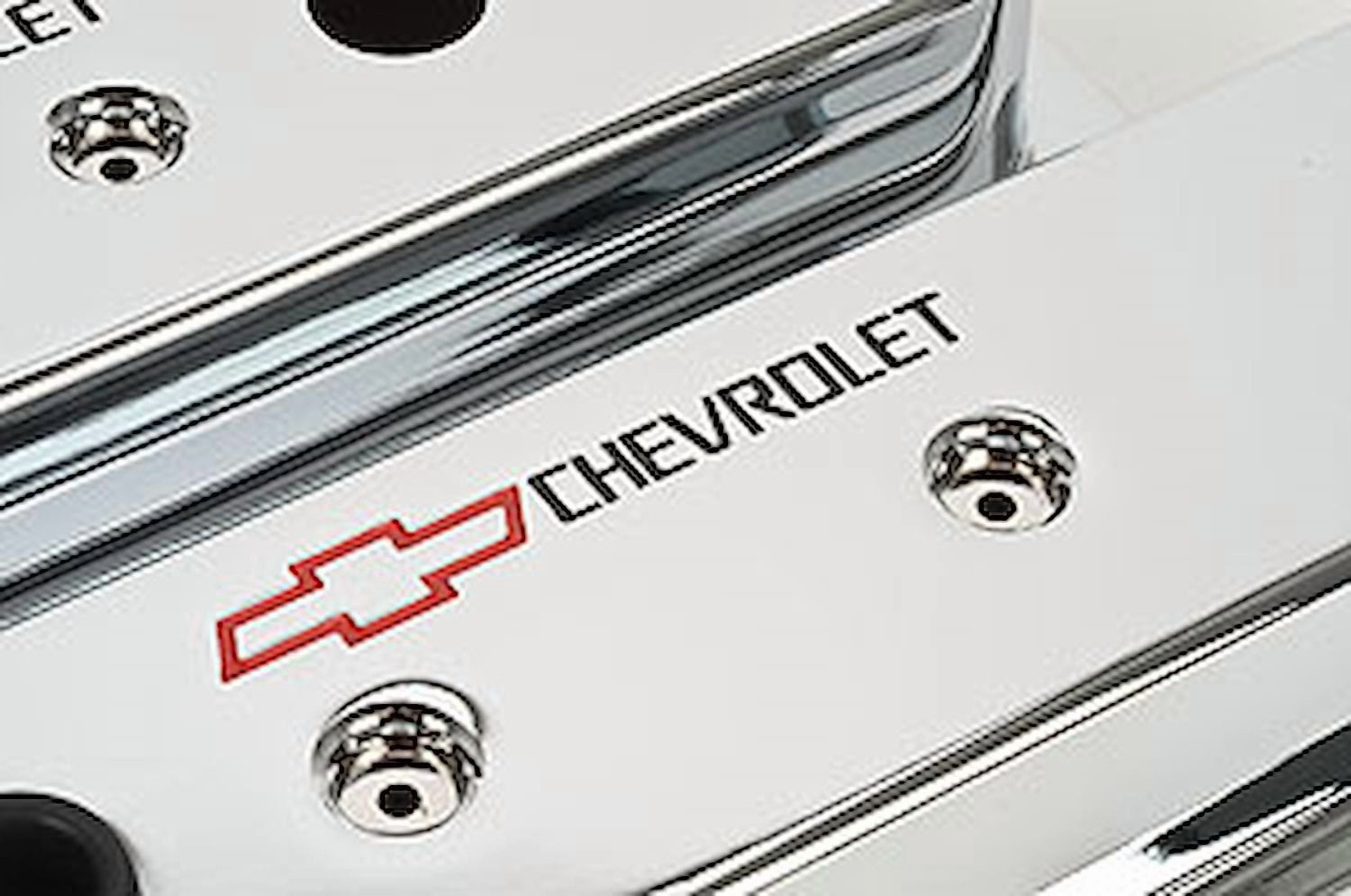 PROFORM Aluminum Tall Valve Covers Small Block Chevy P/N 141-132. Valve Covers. Die-Cast. Tall. Baffled. Breather Hole. Chevrolet Bowtie Logo. Aluminum. Chrome. Center Bolt. Small Block Chevy. Complete Kit.