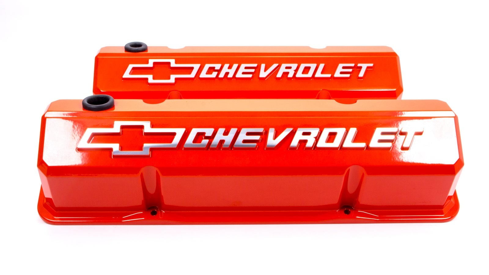 Features Give your engine a custom look with a pair of GM licensed slant edge valve covers by Proform The diagonal cut of the top section ensures no mess, and the bottom lip will give a tight seal Proform manufactures these valve covers out of quality materials to ensure a proper fit and durabilitySpecifications Color: Orange Weight: 20 lbs – SKU: MYRD19516