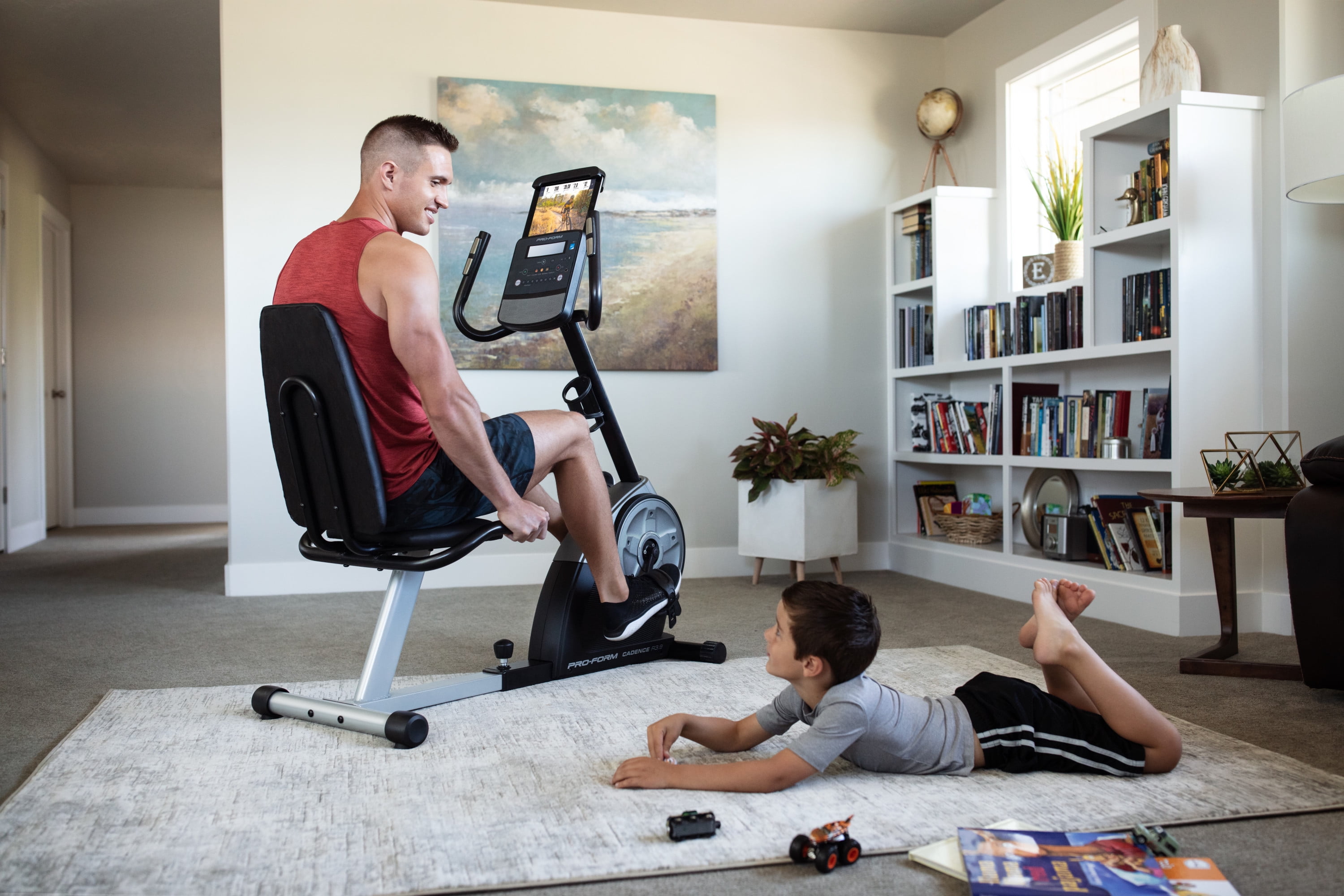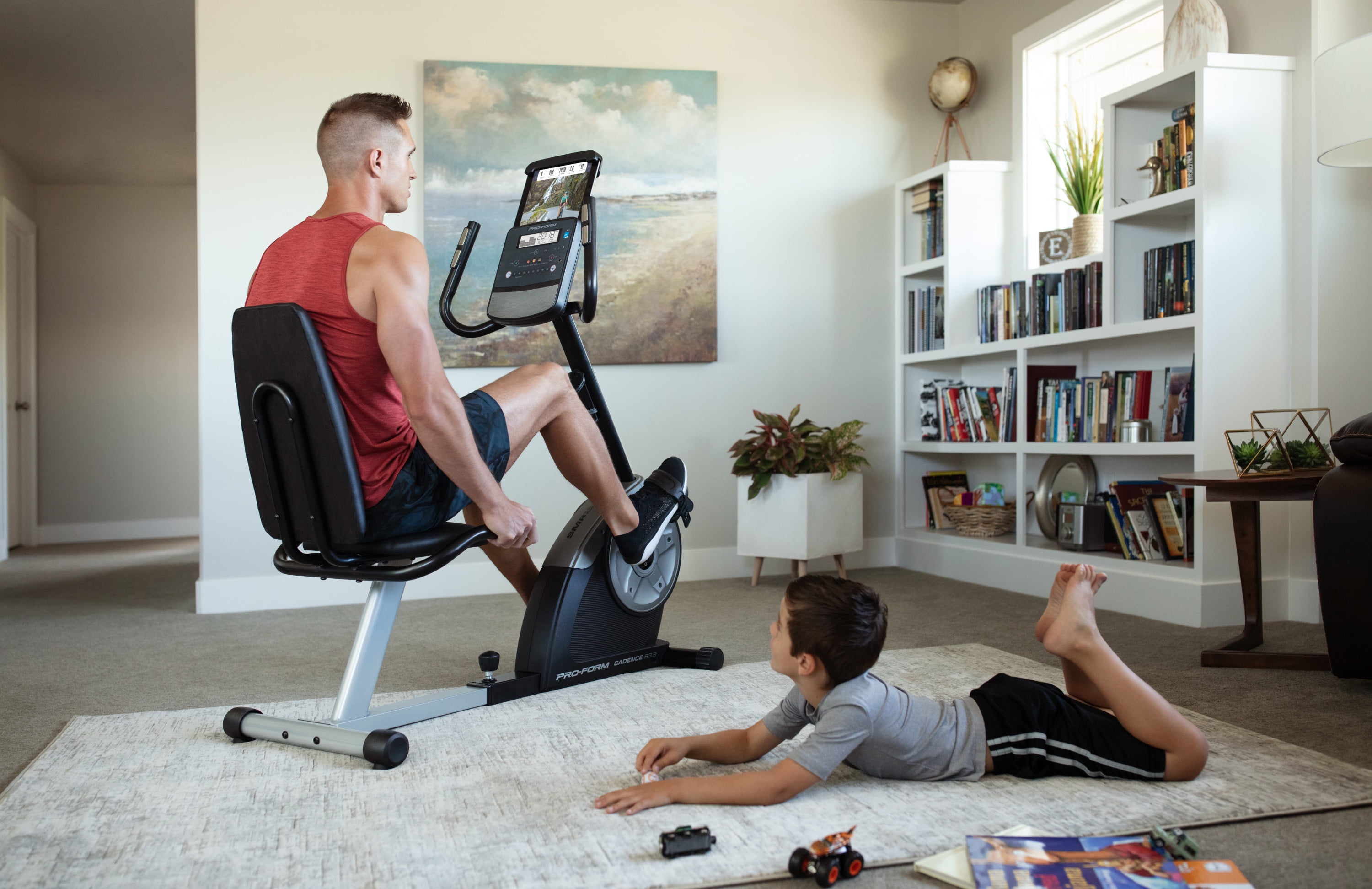iFit Enabled Top Trainers: iFit brings the best personal trainers in the world straight to your screen, making it easy to find the perfect coach for you Global Workouts: Embark on a virtual journey around the world with your favorite personal trainer as incline-matching technology digitally adjusts your resistance to mimic real-world terrain Studio Classes: Participate in virtual boutique studio classes Personalized Workouts: Personally-tailored workouts based on your fitness level and interest are sent to your equipment every day Activation Required: Redeem your 30-day iFit Coach Trial* to activate your product and gain access to world-class personal training in your home *Credit card required – iFit membership not required to access onboard workouts and other core features of your exercise bike. After trial period, membership auto-renews with fee. WIFI required, tablet not included. Cancel anytime Large LCD Window Display Keep an eye on your heart rate, power output, estimated calorie burn, and other insightful workout stats on this large display Integrated Device Shelf Stream your favorite media while you train by keeping your tablet or smartphone (not included) secure on this integrated device shelf Become immersed in exciting iFit workouts (membership sold separately) by streaming on-demand, trainer-led videos right on your exercise bike 16 SMART Digital Resistance Levels Take control of your workout by cycling through 16 levels of powerful digital resistance – so you can effectively engage in speed, endurance, interval, and recovery training With iFit (membership sold separately), your personal trainer will auto-adjust your exercise bike’s resistance to mimic the real-world terrain of exciting destination workouts, or meet the recommendations of virtual studio classes Recumbent Frame Take the pressure off of your knees and ankles with this comfortable recumbent frame Perfect for high-quality, low-impact workouts from the comfort of your living room SMR Silent Magnetic Resistance Industry-leading SMR Silent Magnetic Resistance technology keeps every pedal rotation smooth and quiet, so you can fully focus on your workout EKG Grip Sensors** These integrated sensors provide an almost instant estimate of your pulse so you can stay closer to your target heart rate as you train, helping you make the most out of each workout **Not a medical device. Accuracy may vary depending on activity and physiology Adjustable Bike Pedals Adjustable straps allow you to comfortably secure your feet onto your pedals so you don’t lose traction or slip off your pedals mid-workout Oversized Cushioned Seat Built to make each ride as comfortable as possible, this oversized cushioned seat can be adjusted to find the perfect fit for your workout 275 Lb. User Capacity 5-Year Frame Warranty See for full warranty Footprint 52″ x 24″ x 55″ Model #: PFEX61719