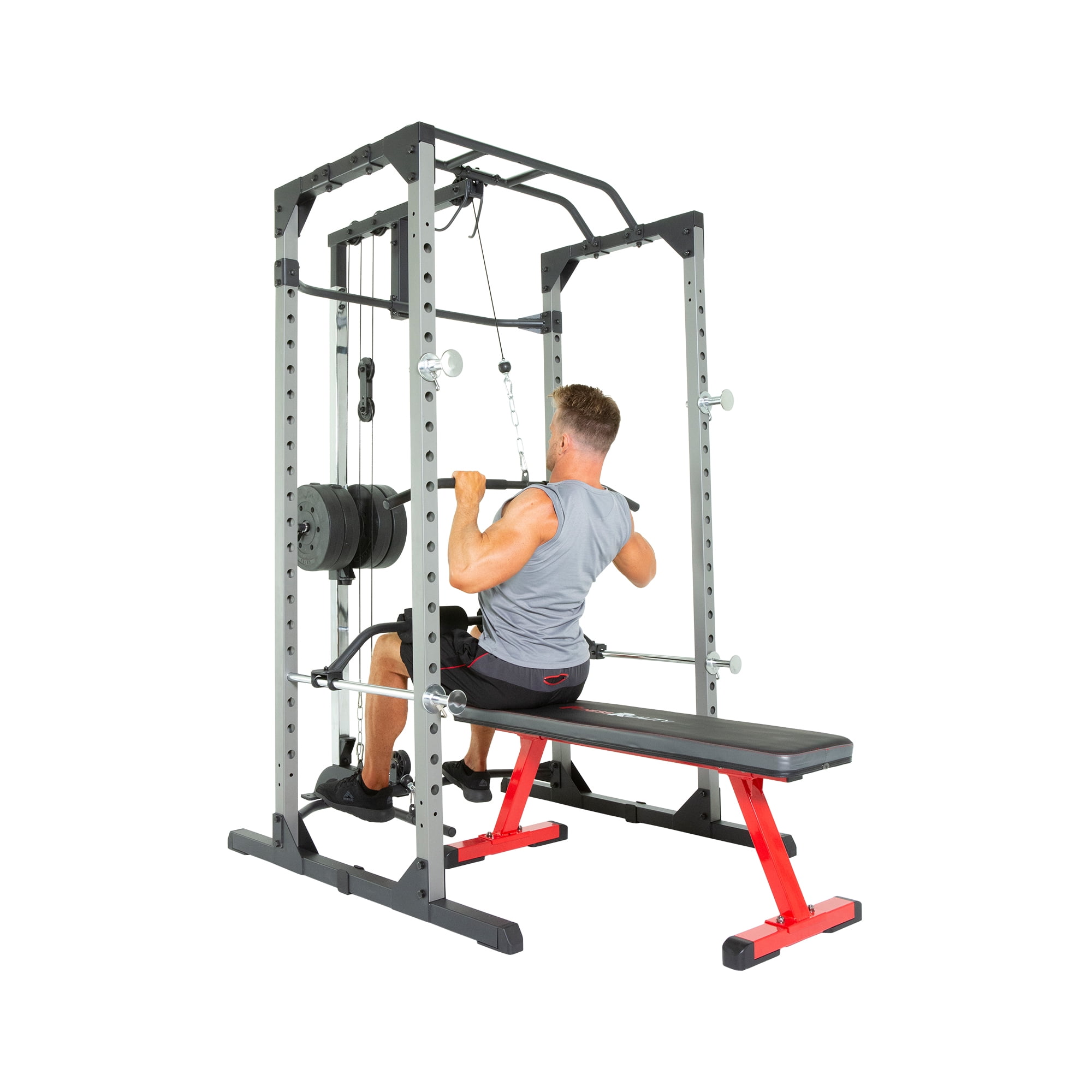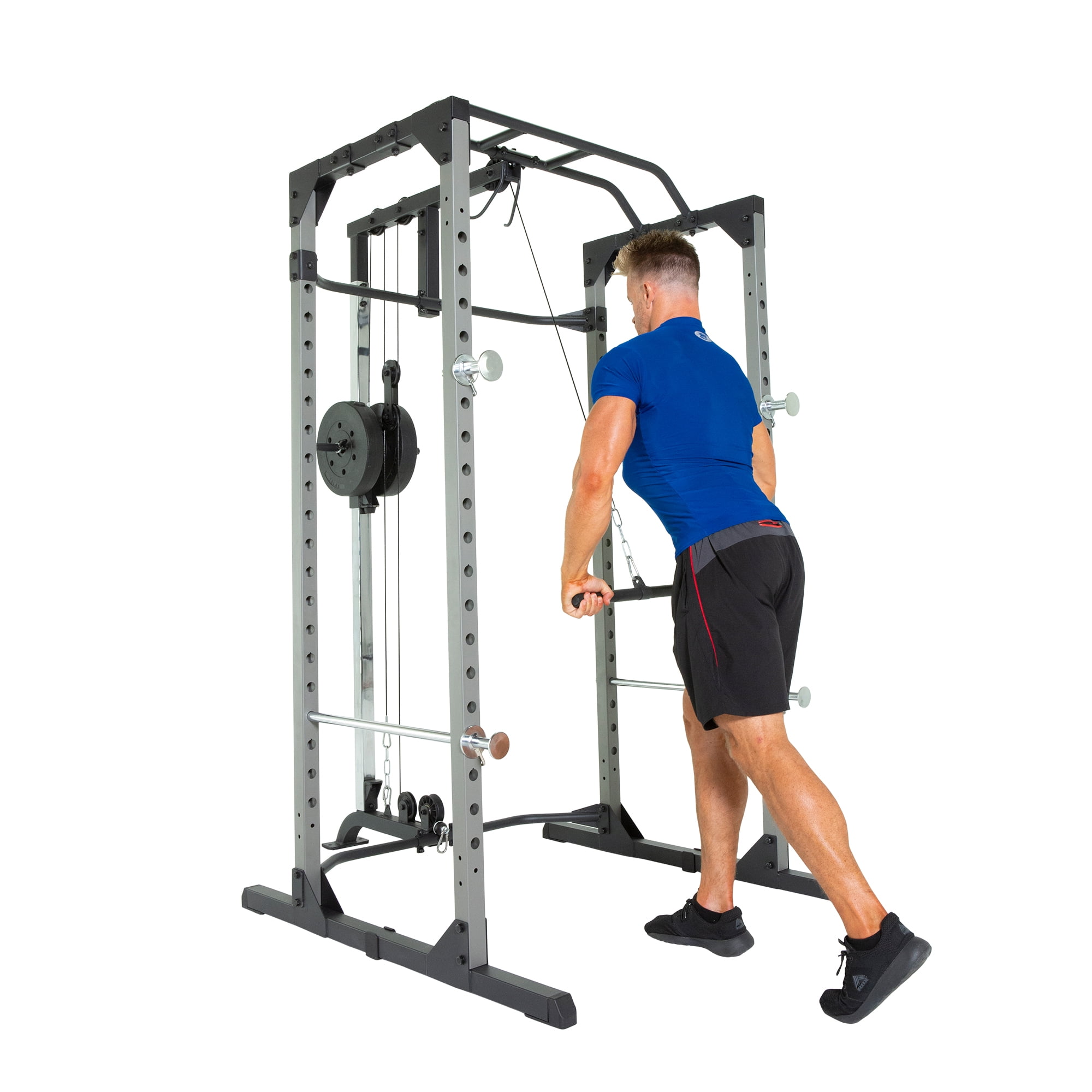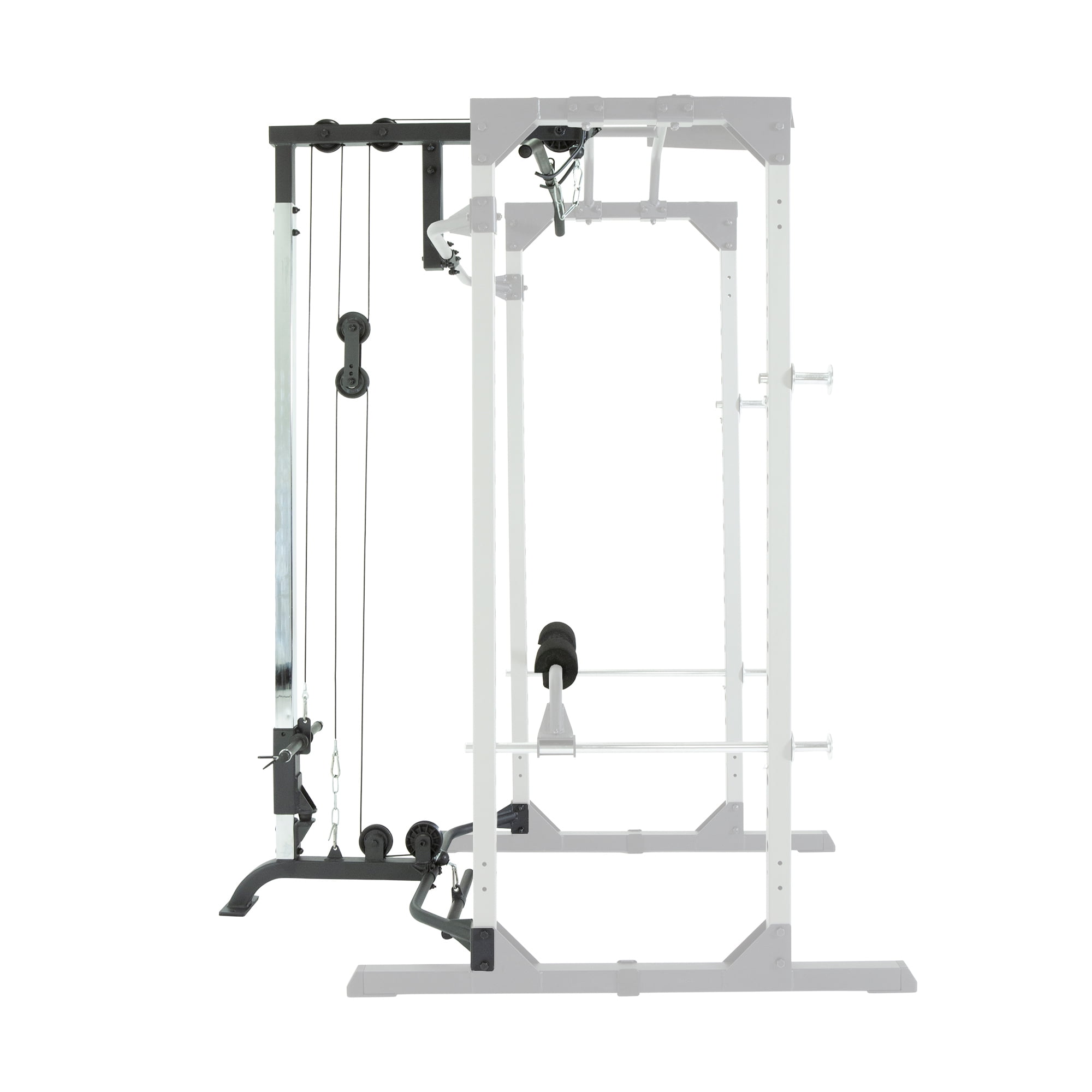 Key Feature: Includes high let and low row pulley systems High tensile strength nylon coated cable Easy-glide 2″ x 2″ chrome guide rail for smooth operation Includes one 39″ let bar and one 20″ low row bar attachment with high-density foam grips Extended lower rear crossbar provides extra space for fitting in benches and footrests for seated row exercises Ball-bearing pulley systems provide smooth operation while exercising Leg hold-down to hold you securely in position for let pull-down exercises The leg hold-down can shift along the long safety bars for your most comfortable secure position The height of the leg hold-down can be adjusted by shifting the long safety bars up or down along the cage height Two adjustable foam rollers included with the Leg Hold-down 6.5″ long weight plate storage post Two 1-inch Spring Clip Collars included For use with Olympic or standard weight plates 2″ Olympic plates need to be used with Olympic Adapter Sleeves (Not Included) High-density foam rubber handgrips Builds muscles on your upper back, shoulders, and arms (biceps and triceps) with a variety of exercises such as Wide Lat Pulldown, Lat Pull Over, Tri-cep Extensions, and more. Designed to be used with the PROGEAR 1600 Power Cage and Utility Benches (Not Included) Specification: Some assembly required Weight plates not included 270lbs weight plate capacity Product Dimensions: 46.5″ L x 35″ W x 84.5″ H Product Weight: 54 lbs. Carton Dimensions: 72.8″ L x 9.3″ W x 13.8″ H Carton Weight: 68.1 lbs. It only fits ProGear 1600 Ultra Strength 800lb Weight Capacity Squat Stand Power Rack Cage