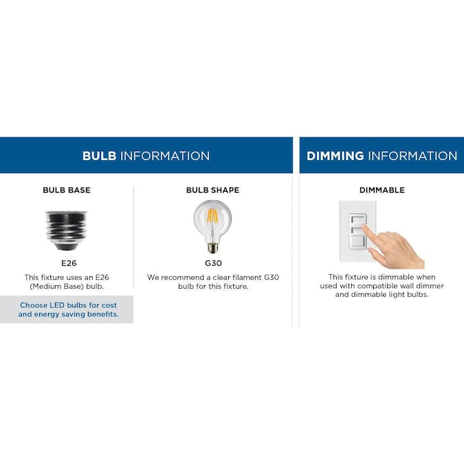 • Use 3 medium base bulbs that are sold separately (60w max – LED/CFL/incandescent); compatible with dimmable bulbs so you can create your desired ambiance; we recommend using vintage bulbs to enhance the wall light’s timeless industrial aesthetic
