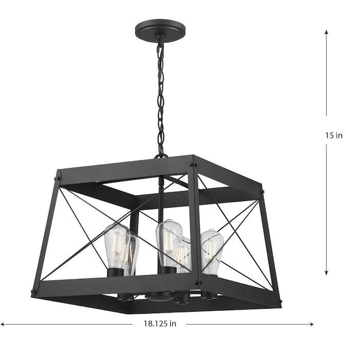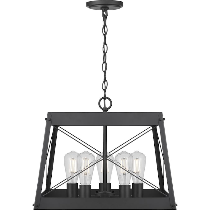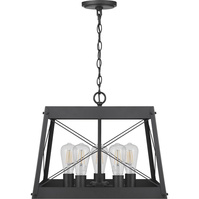 The Bradberry 5-light pendant features an open, airy design finished in matte black that allows unobstructed layers of light into a room. Elegant square banding accented with metal bars capture gracefully patterned trim, creating beautiful visual interest. Chain hung from a round loop from the pendant’s top, the hanging height is easily customized to your space. Its clean, updated styling is ideal for kitchens in modern farmhouse settings.