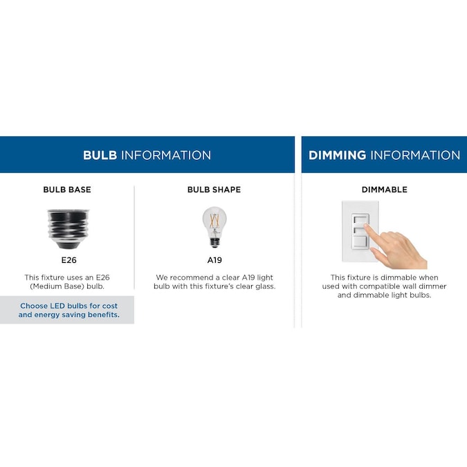 • Uses three 60-Watt maximum medium base bulbs, or LED equivalent, that are sold separately, dimmable when used in conjunction with a dimmable bulb
