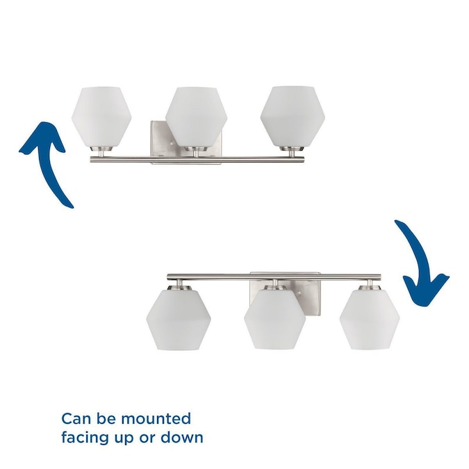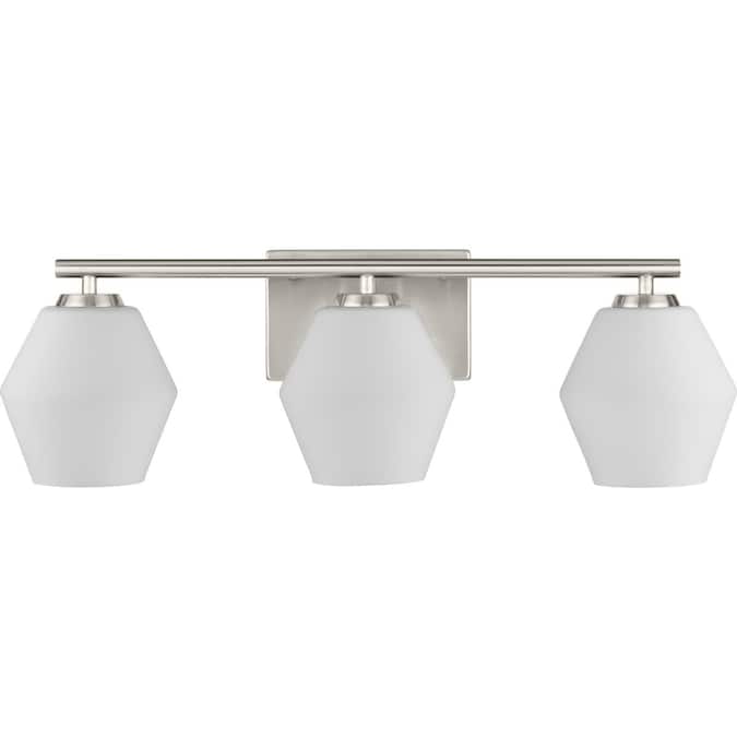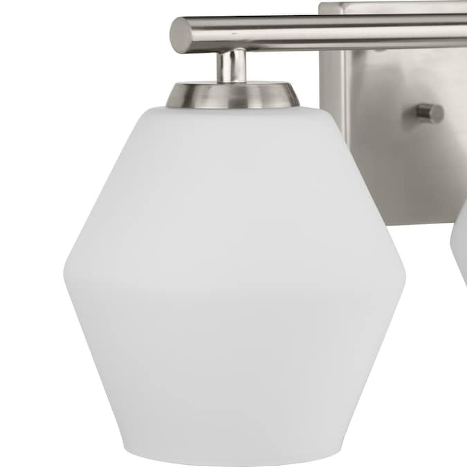 A softened diamond silhouette brings modern appeal to the Copeland Vanity Light. The geometric opal glass shades delivers elegant illumination to bathrooms in mid-century modern and contemporary settings. Mount the light fixture with the glass facing up or down for more design flexibility.