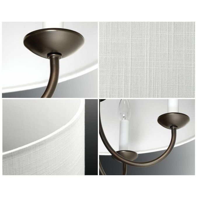 Five-light chain hung fixture with off-white drum shade. Coordinate with a variety of collections including gather and heart.