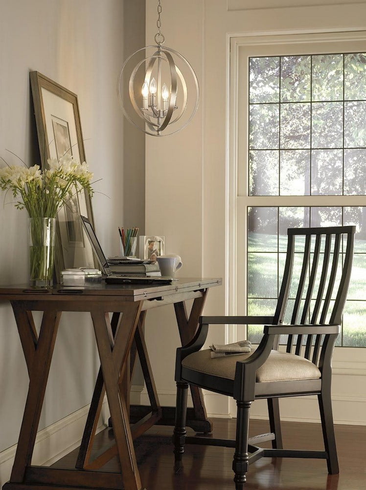 Progress Lighting-P5142-126-Collection: Equinox, Material: Steel, Finish Color: Burnished Silver, Width: 10.13″, Height: 11.75″, Chain Length: 72″, Lamping Type: Incandescent, Number Of Bulbs: 3, Wattage: 60 Watts, Moisture Rating: Dry Rated, Desc: Inspired by ancient astronomy armillary spheres, the interlocking rings pivot for an infinite variety of positions. Three-light mini-pendant in Burnished Silver is ideal for installations over a farmhouse table, dining room setting or kitchen island. Can be used individually or in groupings of two or more. Canopy Included: Yes / Canopy Diameter: 5.5 / Chain Length: 72.00 / Shade Included: Yes . ,-Equinox – Pendants Light – 3 Light in Luxe and New Traditional and Transitional style – 10.13 Inches wide by 11.75 Inches high-Burnished Silver Finish -Traditional Installation