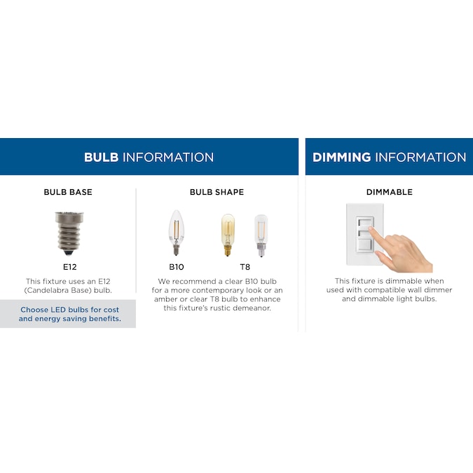 - Use 4 candelabra base bulbs that are sold separately (60 W max – LED/CFL/incandescent), compatible with dimmable bulbs