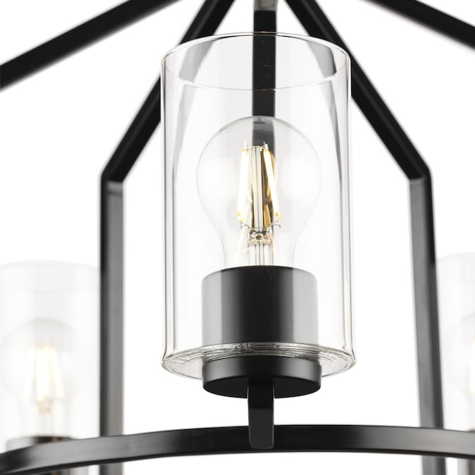 The Goodwin Chandelier features a clean design that seamlessly blends with today’s modern decor. Angular, crisp lines highlight the frame’s modern profile. Columns of clear glass shade offer bright illumination for bedrooms, dining rooms and living rooms in modern farmhouse settings.
