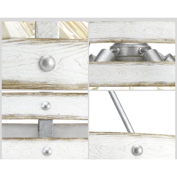 Three circular bands wrap together to create an open design for Gulliver. Dual toned frame color combinations of galvanized with antique white accents. A hand painted wood grained texture complements rustic and modern farmhouse home décor, as well as urban industrial and coastal interior settings.