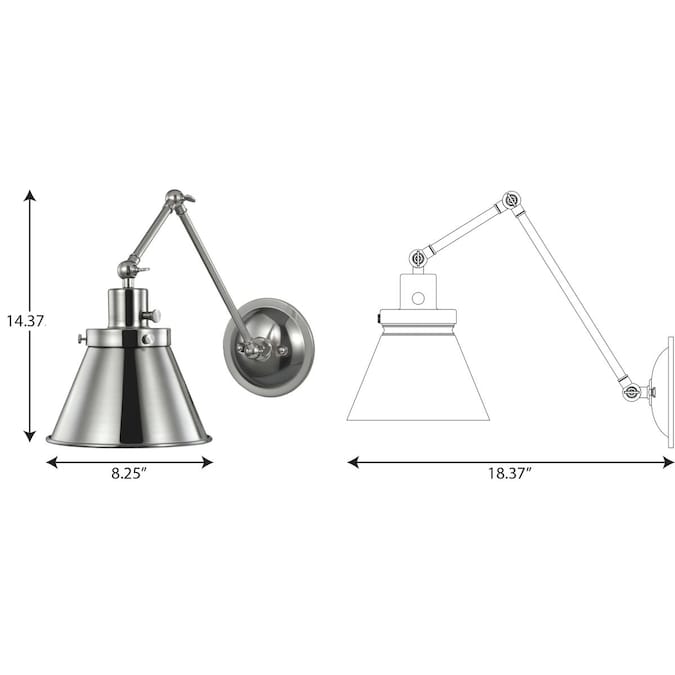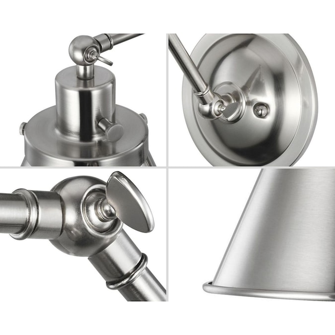 Enjoy focused task lighting with the industrial demeanor of this one-light swing arm wall bracket. A metal shade is ready to provide you with focused task light wherever illumination is called upon. The light fixture’s signature adjustable arm is coated in a brushed nickel finish and makes this wall light a favorite choice for when you want to read your favorite novel before bed.