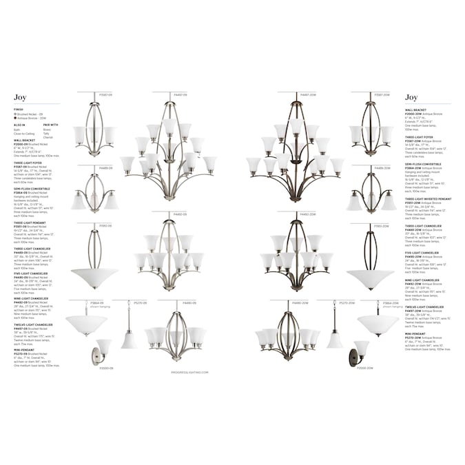 - Pairs with the Bravo, Tally, and Cherish collections by Progress Lighting