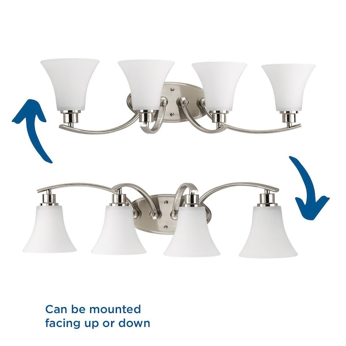 - Use 4 medium base bulbs that are sold separately (100 W max – LED/CFL/incandescent); compatible with dimmable bulbs